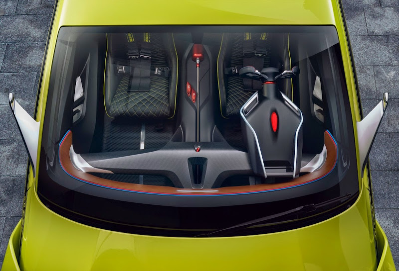 Other racing features include bucket seats with high-quality stitching, a six-point belt and red anodised safety features such as the outlet nozzles for the extinguishing foam, the fire extinguisher itself, and the two switches on the centre console for the emergency shut-off and fire extinguishing mechanism. The only elements in the rear of the vehicle are two helmets integrated into the transmission tunnel. These are held in place by a belt when not in use. In the place of a rear seat bench, there are only covers for the eBoost energy accumulators. Special reflector technology in combination with LED strips create an impressive 3D effect on the covers.
