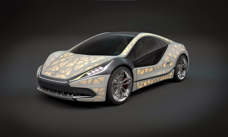 the "edag light cocoon" is not just a concept study of a compact, dynamic sports car, but also an unprecedented projection of the ultimate in future lightweight construction: a complete, bionically optimised vehicle structure combined with a weatherproof textile outer skin panel, which marks a new dimension for lightweight construction and automobile aesthetics: backlight technology illuminates the skeleton-like, organic structure, and brings the "edag light cocoon" to life.