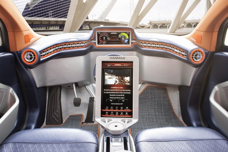 the hmi design was created by luxoft consulting germany, the lightweight-construction aluminum frame for the central display by georg fischer automotive. nxp with its intelligent networking technologies provides the secure connection of the car and its occupants to the outside world. this includes radar and ‘vehicle-to-x’ solutions as well as automatic payment for parking via nfc, cell phone charging by means of wireless power charging, clever access solutions, and a keyless entry remote for unlocking, starting and customizing the vehicle. in addition, solid state lighting products provide the proper led lighting on the vehicle.