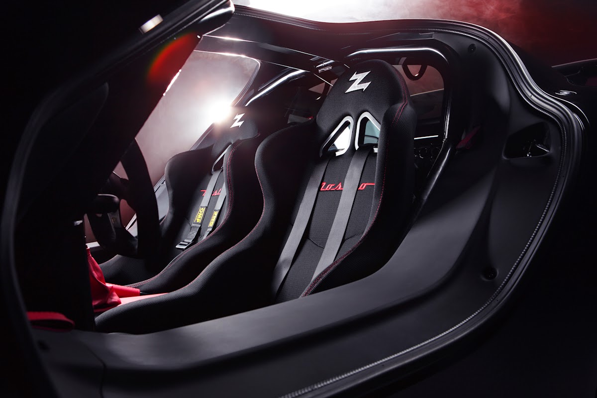 - doors opening with a high, forward movement (a functional choice, dictated by the shape of the carbon fiber cell)