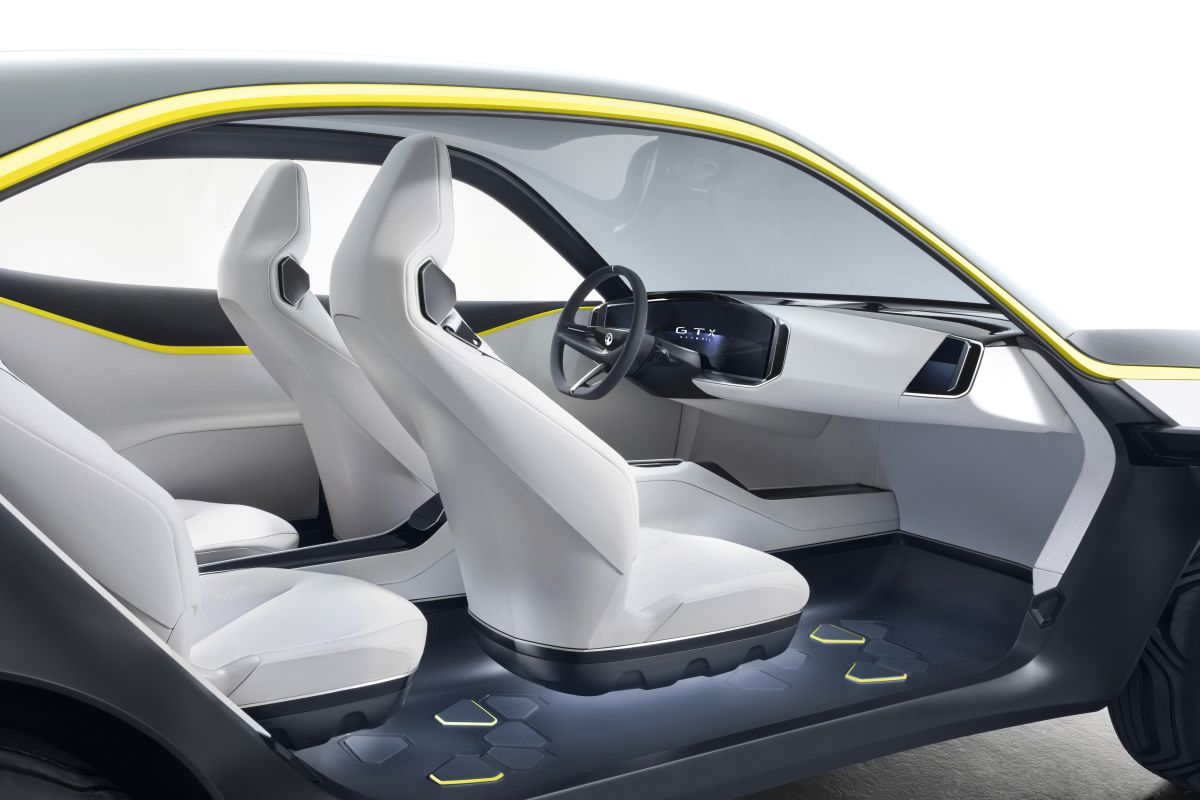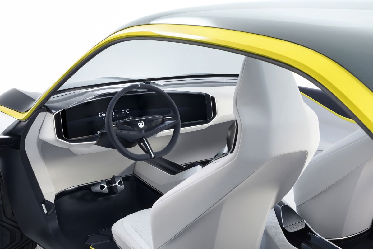 The Vauxhall GT X Experimental’s airy interior adopts the same ‘visual detox’ principle as its exterior. Surrounded by the panoramic windscreen/roof and uninterrupted side-window, the cabin artfully disguises the raft of innovations contained within it. A standout feature is an instrument panel encased in a module, which mimics the outer Visor, and is called the ‘Pure Panel’. A wide, single screen welcomes drivers and eschews the need for a multitude of smaller screens and buttons, as seen in many production cars today. The Pure Panel allows drivers access to all the GT X Experimental’s technology, without any unnecessary distractions.