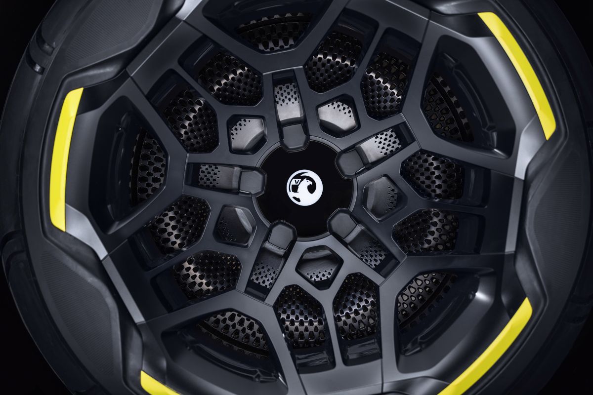 The purity of the interior’s design can also be seen in the positioning of the air vents, which have been hidden behind the screens, allowing clean and smooth surfaces all around the driver. Simplifying the occupants’ driving experience, two screens on the far left and right of the front panel display the exterior side views from the small pop-out cameras on either side of the bonnet. Elsewhere, the steering wheel’s design has been simplified, while its central module mirrors the shape of the Visor. And, like the centre-logos on the road wheels, the LED Vauxhall Griffin remains upright, no matter what the steering wheel position.