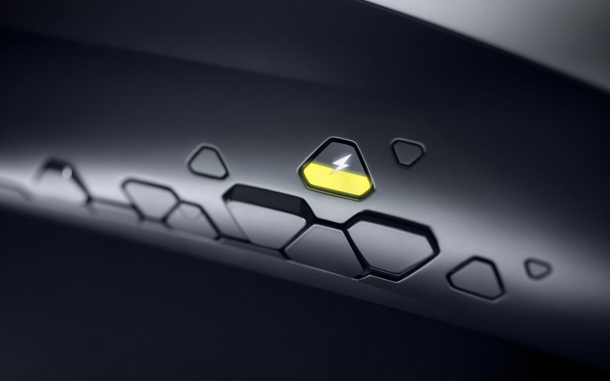 In counterpoint to the ‘visual detox’, neat graphic details energise the GTX Experimental’s appearance. Cropped triangles are engraved along the sill under the driver’s side rear door. One of them contains a small, hexagonal LED screen that shows the electric charge level of the battery. The 17-inch wheels look much bigger, thanks to robust rubber covers that flow over the rim to visually enlarge the size of the dark blue tyres. Yellow graphic lines on the rim echo the yellow signature accent of the body and surround the electronic Griffin emblem that stands still as the wheels rotate. Underlining the SUV character of the car, protective cladding wraps around the lower body, giving the GT X Experimental a robust stance and rugged look.