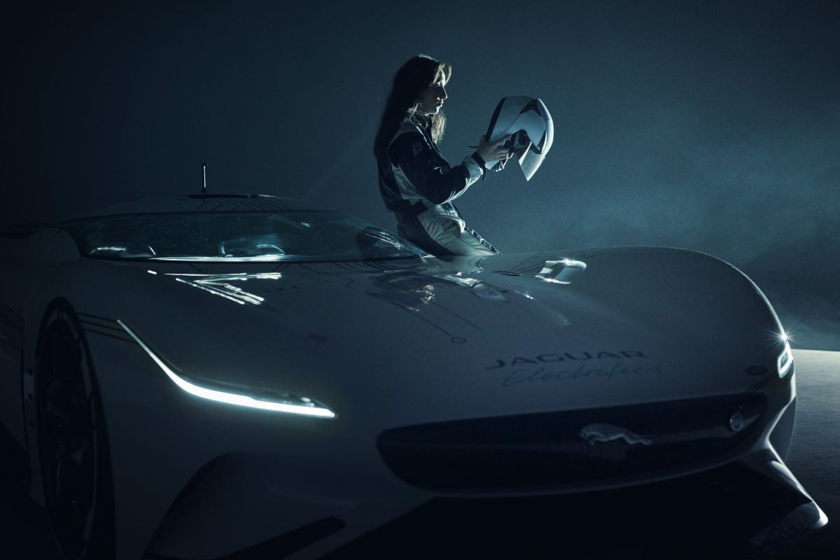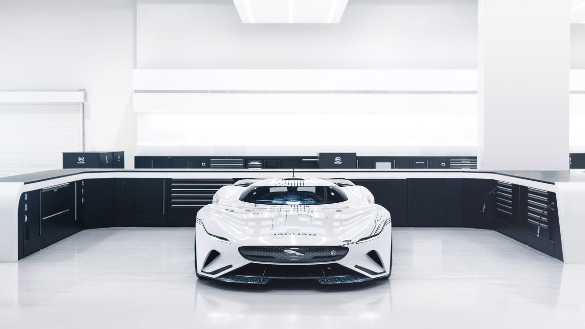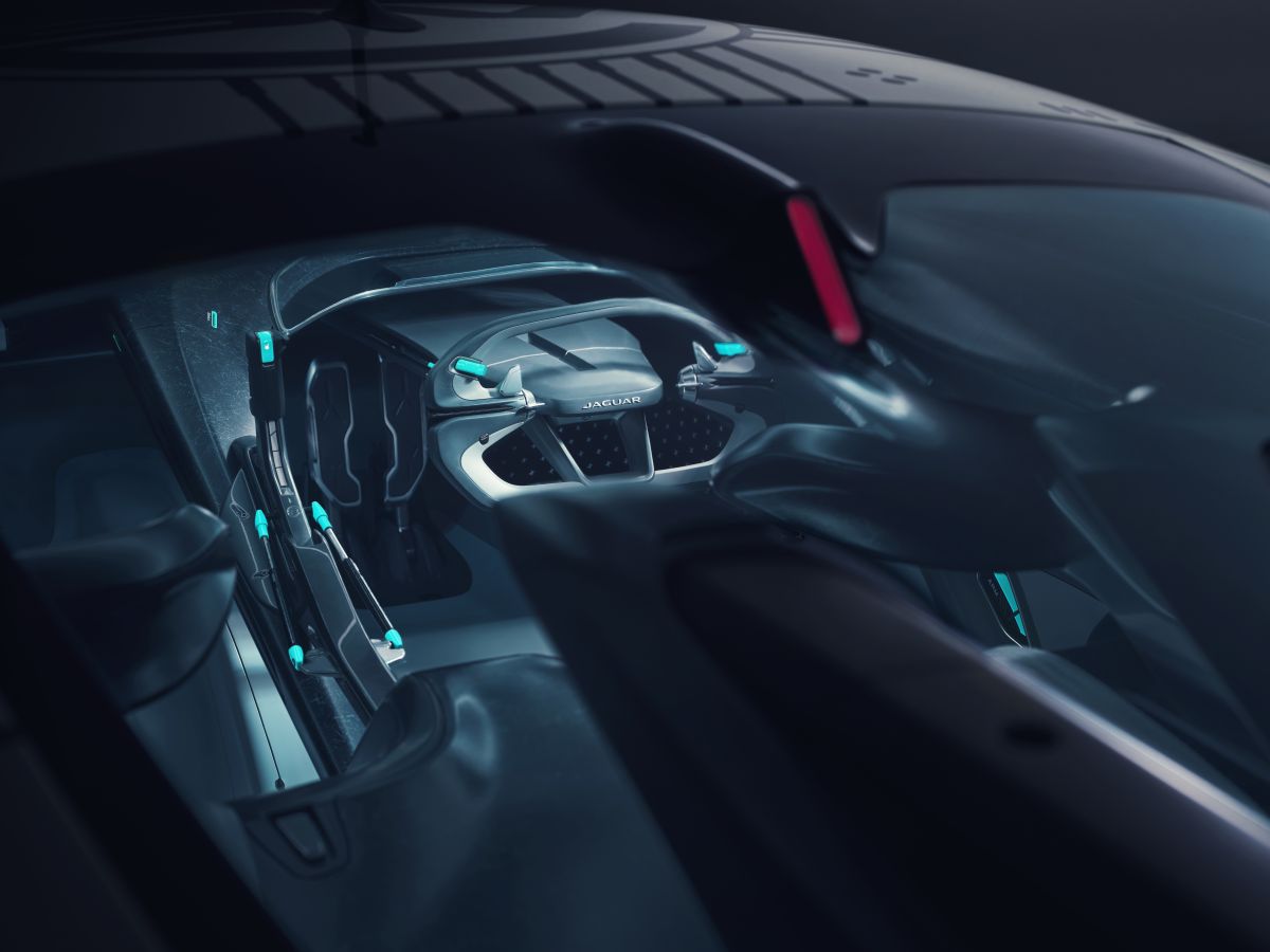 - Real-world design study: Full-scale model built by Jaguar Design to showcase the most radical interpretation yet of an all-electric Jaguar race car