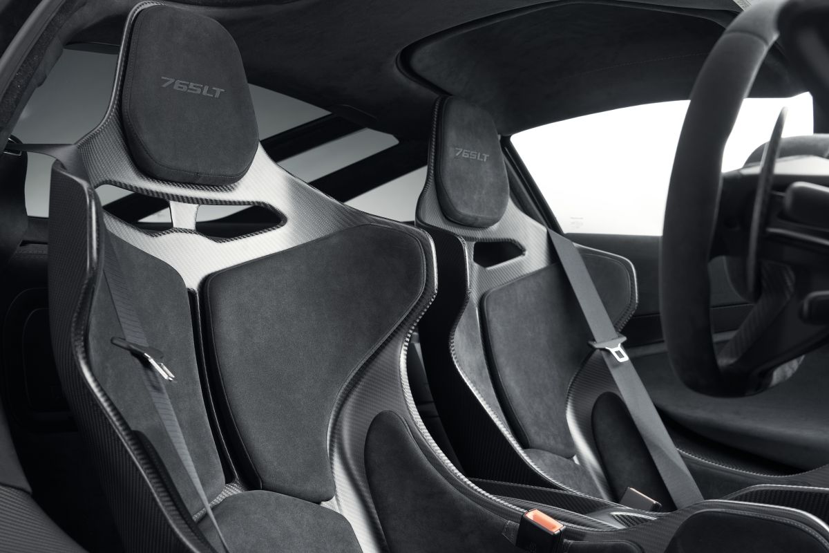 Adopting every weight-saving measure available when specifying a 765LT results in a lightest dry weight of just 1,229kg. To reach this level, customers will need to include options such as the Super-Lightweight Carbon Fibre Racing Seats. Developed for the McLaren Senna and crafted in carbon fibre, the seats are constructed using an innovative double-skin shell technology that reduces weight by one-third in comparison with the same seat shell manufactured using conventional carbon fibre processes. Each seat shell weighs just 3.35kg.