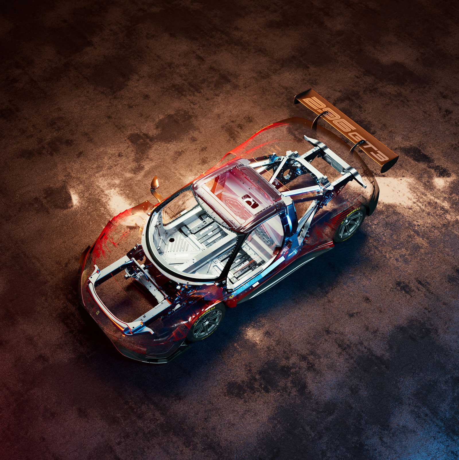 Chassis and vehicle dynamics. While the 296 GT3 chassis draws on the experience of the 488 GT3, it is entirely new and is made of aluminium. Besides being extremely easy and fun to drive, the 296 GT3 can exploit the grip potential offered by the tyres without compromising their integrity in just a few laps, benefiting performance and repeatability. The chassis’ extreme lightness, which in the 296 GT3 also allows better and more efficient ballast management, contributes to this. The safety structure has been carefully designed using the most sophisticated simulations and innovative technologies and research, especially in alloys and materials.
