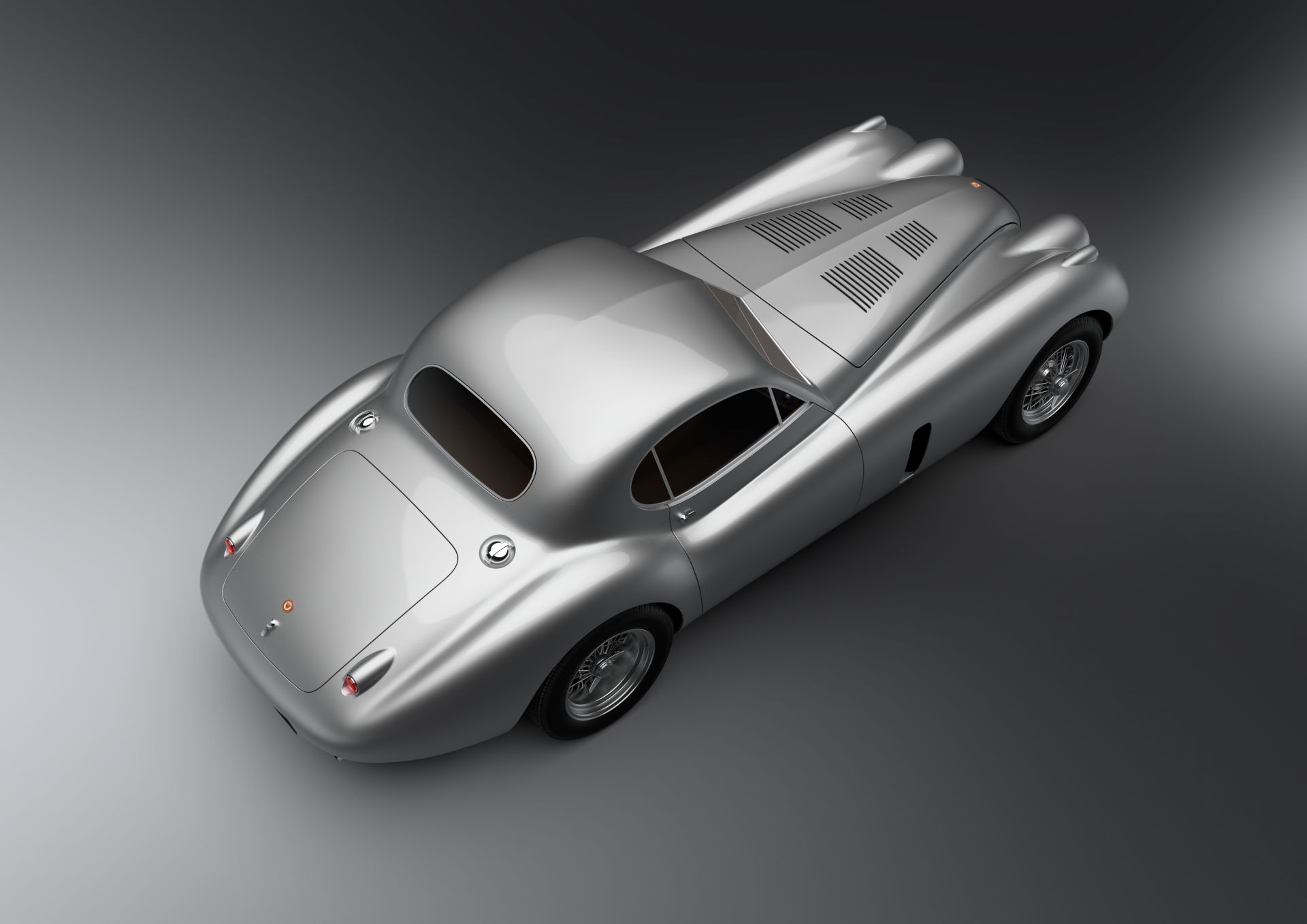 Howse's vision celebrates the original beautifully aerodynamic lines in a way that remains true to the car's original intentions, echoing the kind of work applied to the E-Type Lightweight. The first major task was to lower the roofline so that the proportions become more elegant and purposeful. The next was to add some curvature to the sides; all the body sections now have an acceleration to them which adds sculpture and muscle but also lightness. The arches are wider both at the front and more significantly at the rear with wider alloy wire wheels filling them out nicely, giving that 'road racer 'stance. The brightwork was also removed and instead a subtle crease was introduced down the bonnet which follows the split screen into the roof and washes out over the roof, which is more smoothly integrated into the overall form, as are the rear arches. At the rear, the tail now sweeps up to create a more teardrop form. The rear lamps are nestled into the bodywork and the headlights have had the chrome bezels removed, cleaning up the appearance.