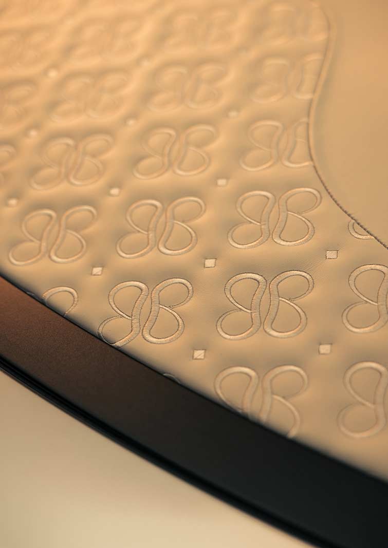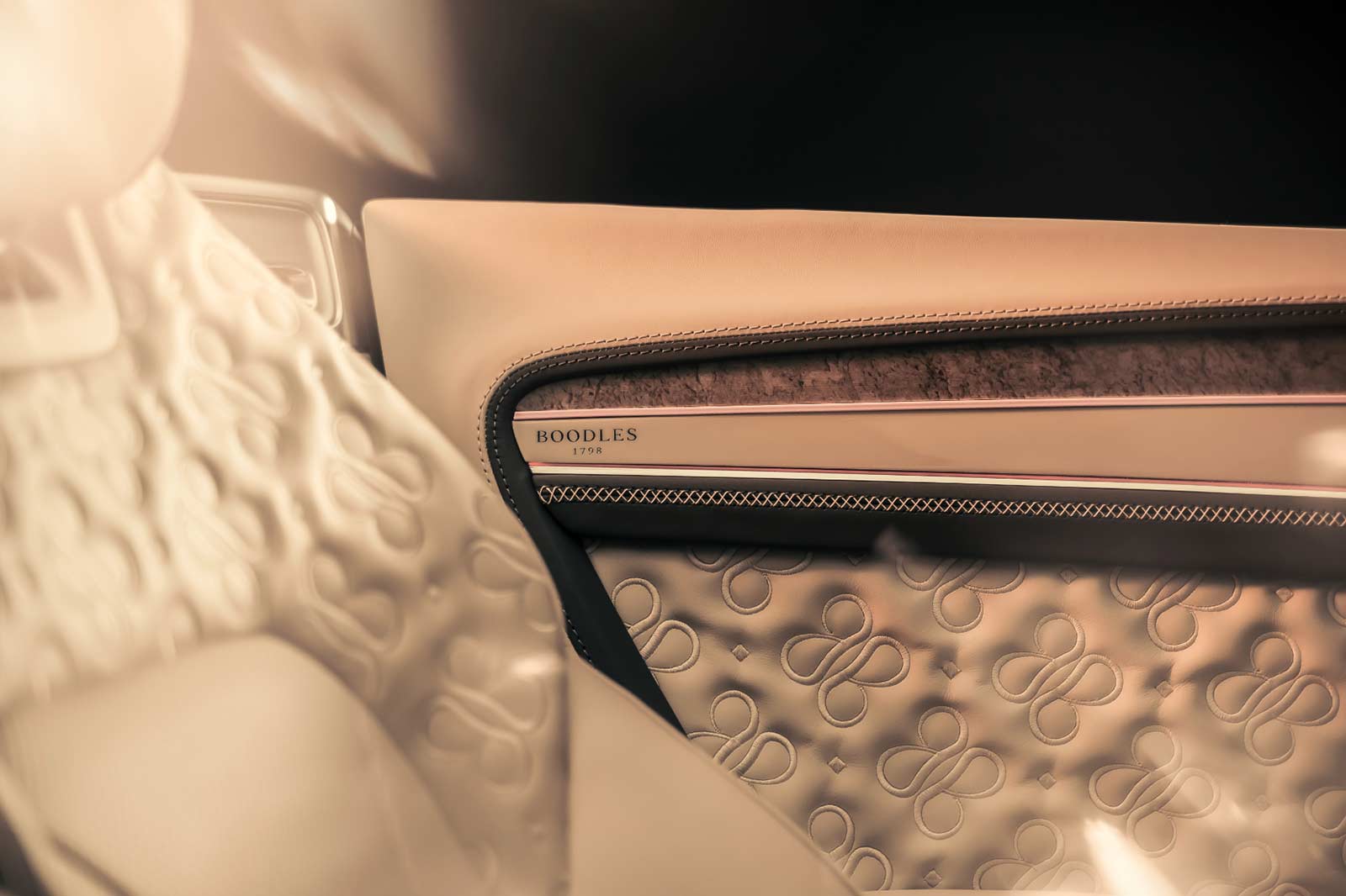 Step inside, and you're greeted by a symphony of bespoke details. From the painstaking 'Be Boodles' blind stitch embroidery, which required over 278,000 stitches and six hours to complete, to the 18ct white gold 'Be Boodles Bentley' pendant adorning the center console, every element exudes opulence and refinement. Even the veneers, featuring a delicate combination of Piano Linen and 200-million-year-old Autumn Stone veneer, speak to the meticulous attention to detail.