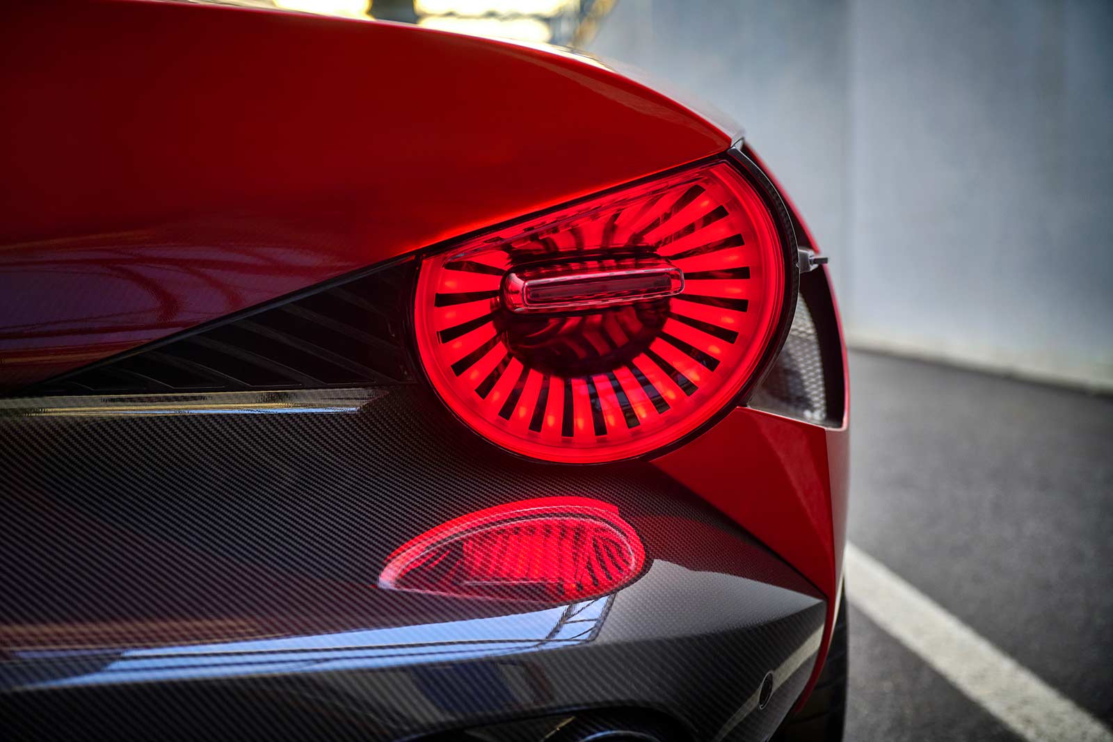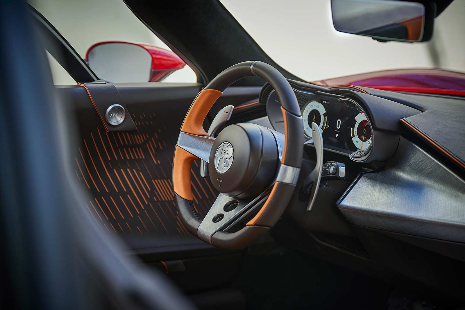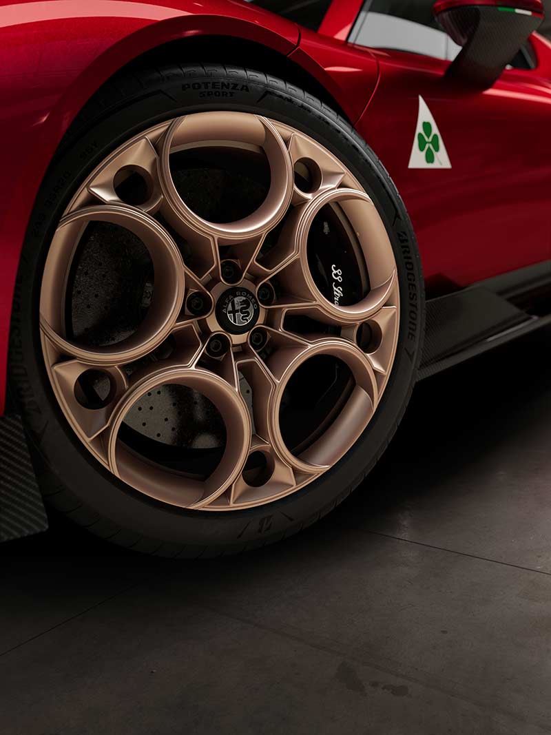 Inside, two trim options, Tributo and Alfa Corse, reflect the car's legacy while embracing modernity. The driver-oriented concept, the inclusion of aviation-inspired mechanical details, and enveloping seats create an exclusive and comfortable environment.