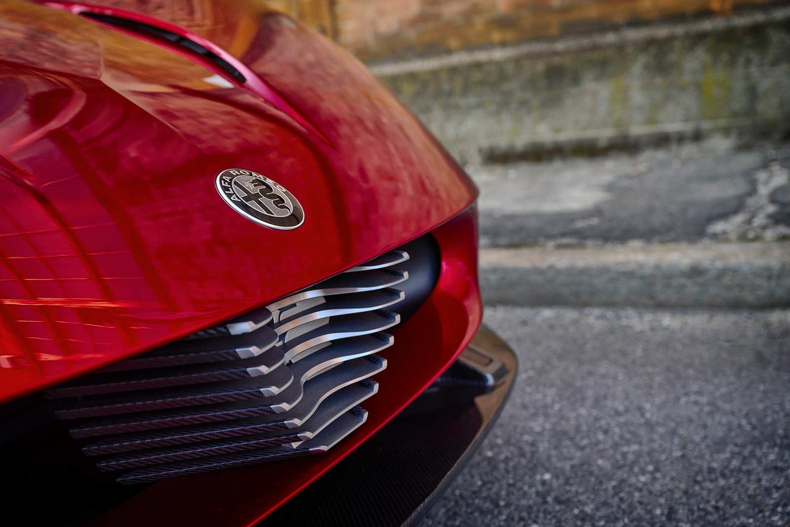 The interior, too, echoes this minimalist design ethos, aimed at maximizing driving engagement. Controls are deliberately kept minimal to minimize distractions, with a central display that employs 3D telescopic design for an immersive interaction. The steering wheel's simplicity intensifies the focus on driving pleasure. The interiors are available in two trims, Tributo and Alfa Corse, both integrating aluminum, carbon fiber, leather, and Alcantara for a sophisticated ambiance that pays homage to the original 33 Stradale.