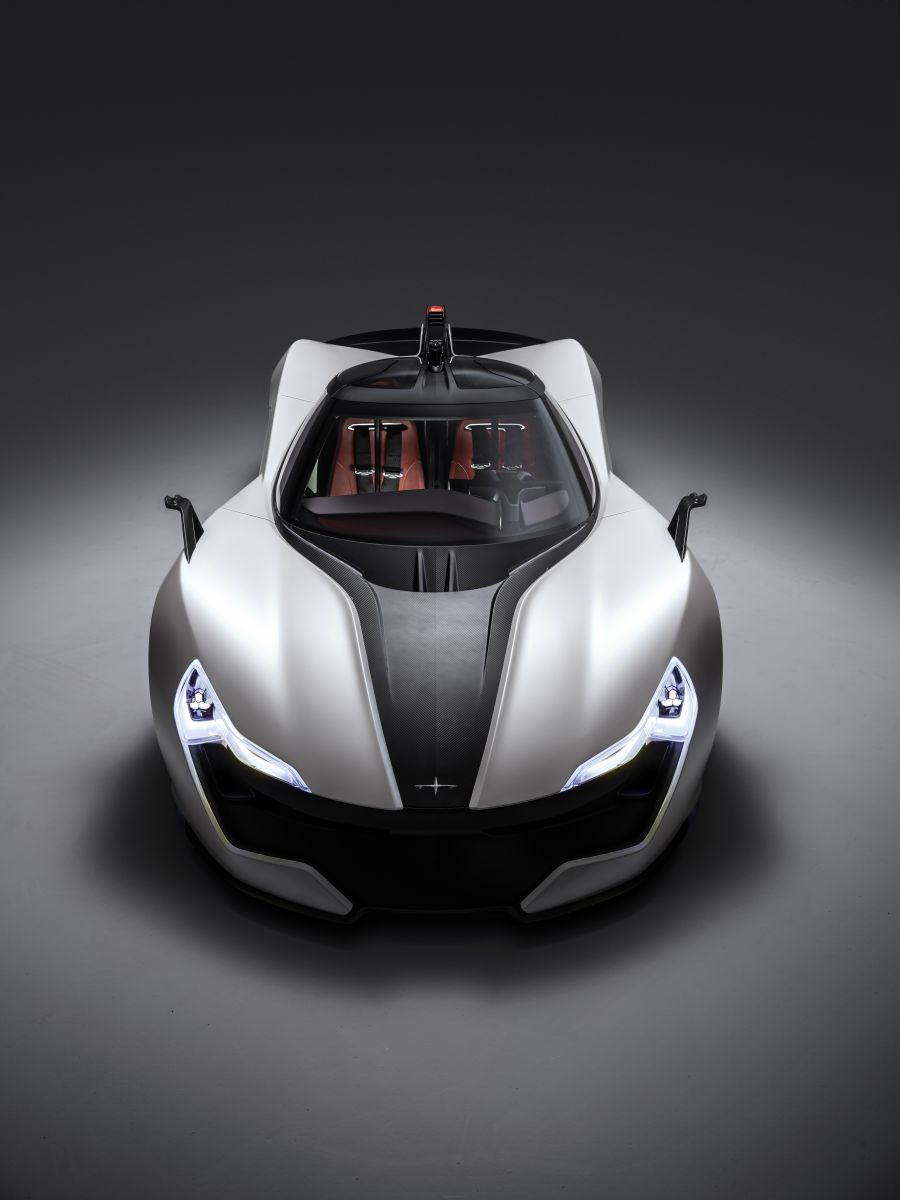 The AP-0 is crowned with a teardrop-shaped glass roof that fuses with a structural, aerodynamic fin, influenced by Formula 1 and Le Mans styling. Beginning at the centre point of the roof, where it houses the advanced LiDAR camera, the fin stretches and slowly descends to the rear of the car.