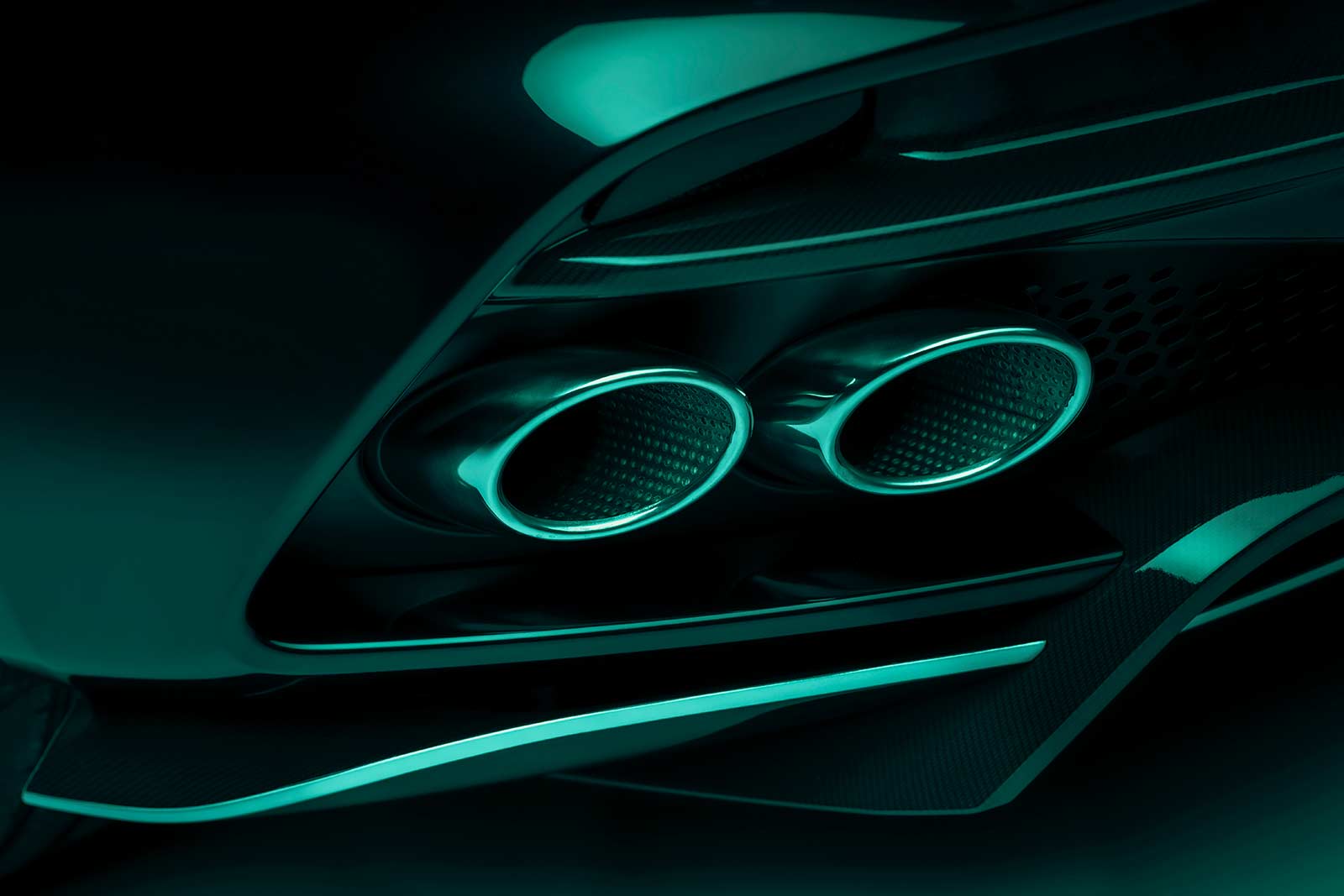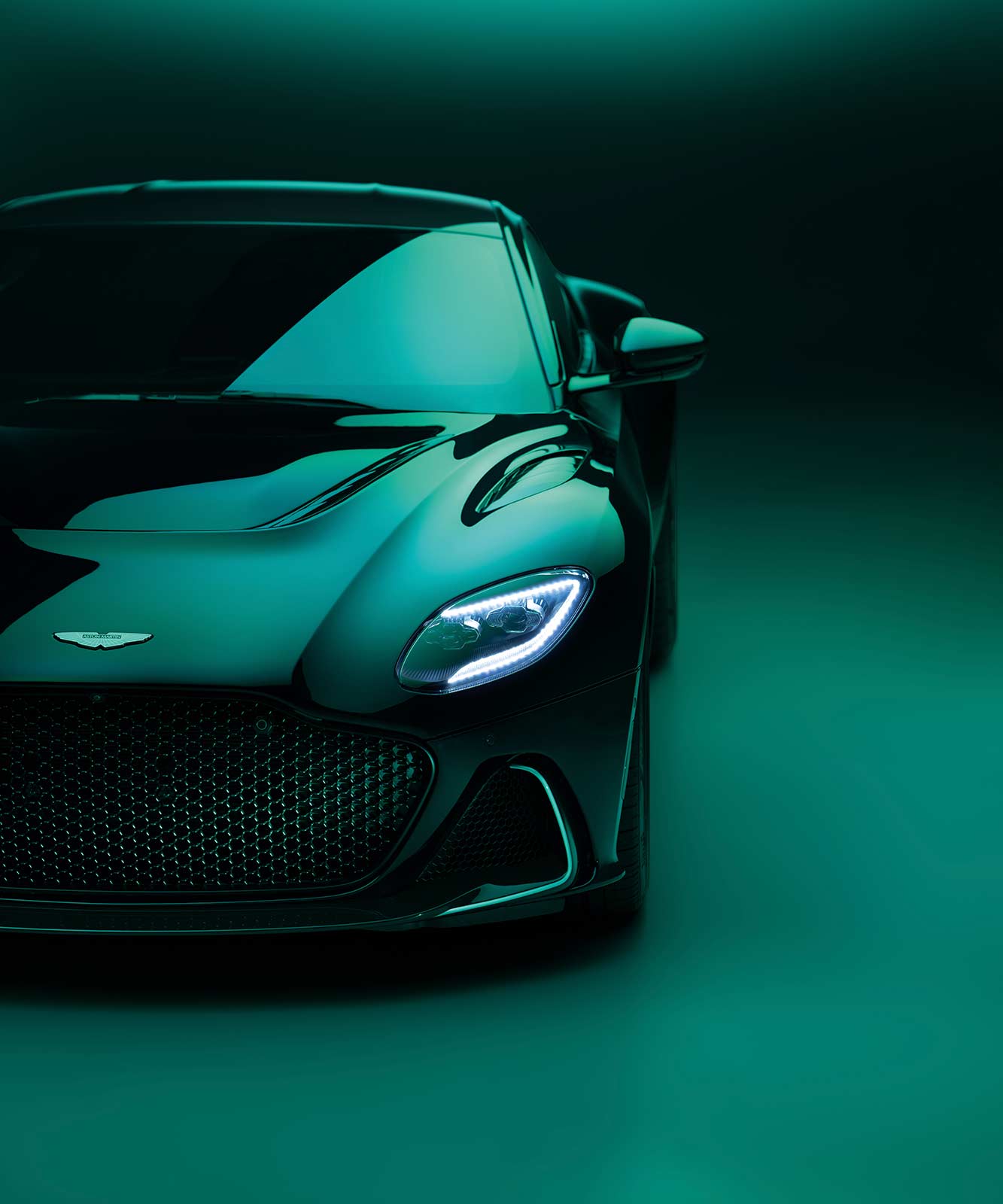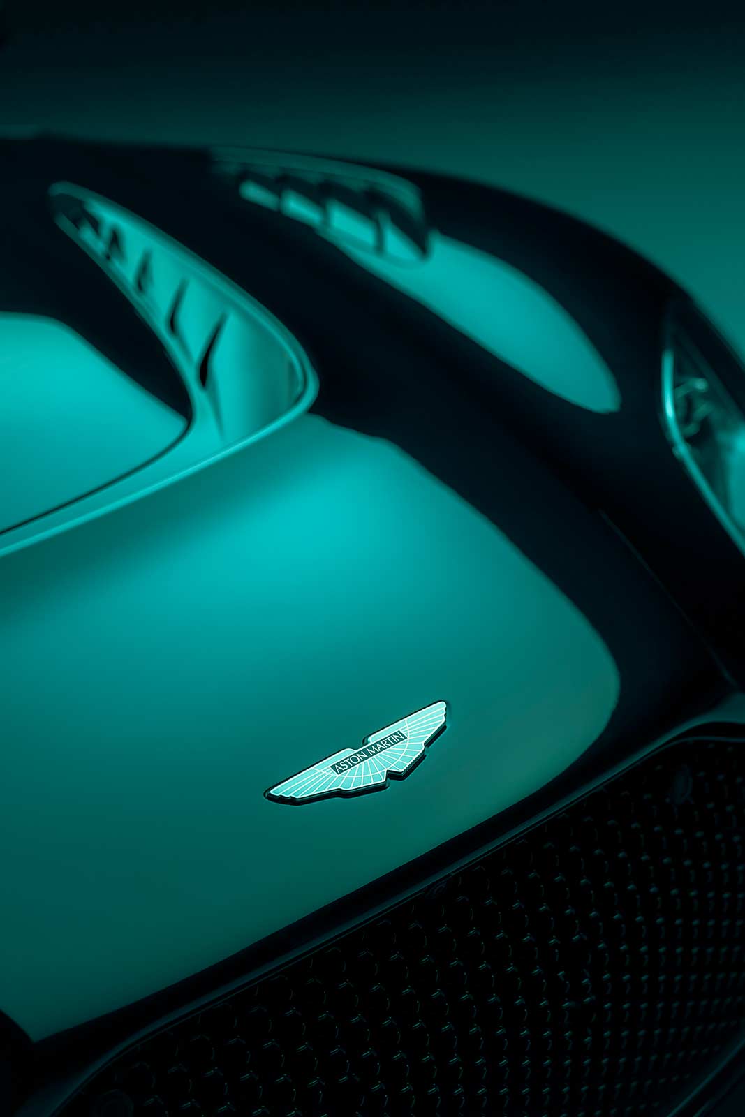 Being an Aston Martin, this enhanced form also had to possess an authentic level of function. Both to provide increased air flow to the radiators, enhancing thermal management and give greater visual road presence. Drawing increased air flow through the engine radiators, the clamshell bonnet features a dramatic ‘horse-shoe’ engine vent and a new front splitter integrates two new outboard vents. Together these serve to enhance cooling and echo the design signatures of previous DBS and V12 engine models.
