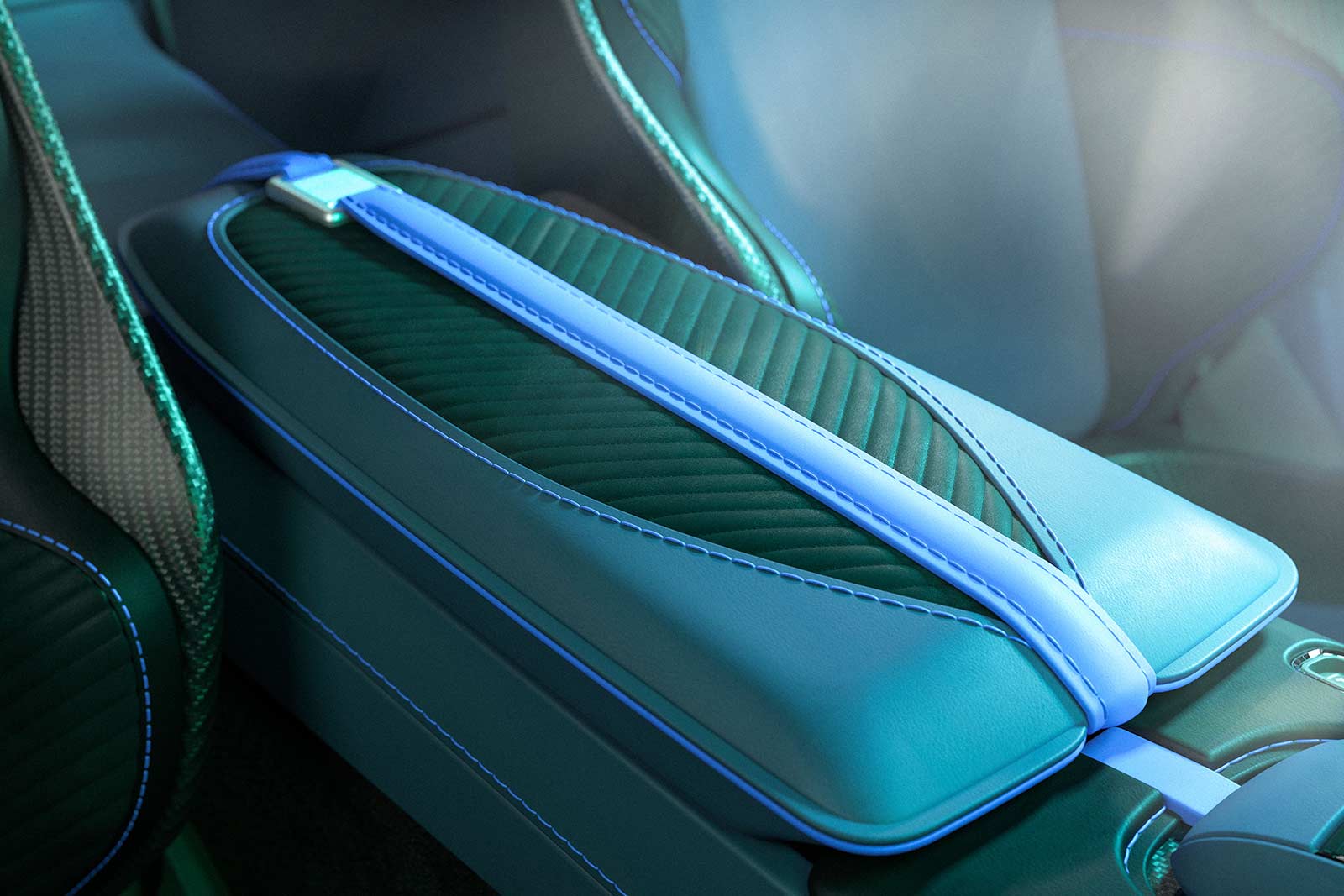 Inside, the DBS 770 Ultimate delights with a dazzling array of fresh design treatments that set it apart, while retaining the instantly recognisable cabin environment of the current DBS. Signifying its halo positioning, DBS 770 Ultimate comes with Sports Plus Seats trimmed in full semi-aniline leather and Alcantara, featuring a ‘fluted’ quilt and perforation pattern as standard. Aston Martin’s performance seat can also be selected as an option. A bespoke trim split has been introduced, with contrast colours linked to welt and stitching, along with a tailor-made strap and buckle badge featuring a laser etched DBS 770 Ultimate logo found on the centre arm rest. Carbon Fibre Gearshift paddles are also fitted as standard.