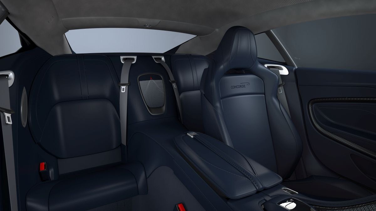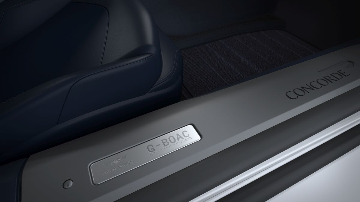The DBS Superleggera Concorde features a carefully judged selection of interior and exterior design and trim modifications to delicately yet unmistakably celebrate the achievements of the Concorde team. Outside, the sports car is distinguished by bespoke side strakes milled from solid aluminium; a bespoke painted livery comprising British Airways colours on the roof strake, aero blade and rear diffuser; black tinted carbon fibre roof with Concorde silhouette graphic; the famous British Airways ‘Speedmarque’ logo in chrome on the front wings; a unique Q by Aston Martin wing badge with black enamel infill; unique and authentic jet black painted Civil Aviation Authority aircraft identifier numbers and bespoke inspection plaques signed by Aston Martin Lagonda President and Group CEO Andy Palmer and British Airways Chairman Álex Cruz.