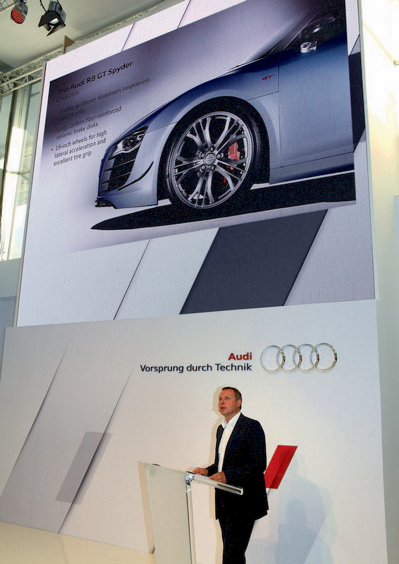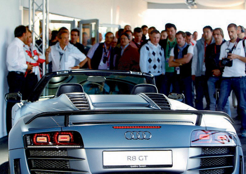 one year ago, audi unveiled the r8 gt in coupe form as the new flagship model of the r8 model line. it wasn’t long before all 333 units in the limited series were sold out. now the open-top version of the high-performance sports car is being launched, with production again capped at 333 units. each car sports a tag with its individual number on the gear lever knob.