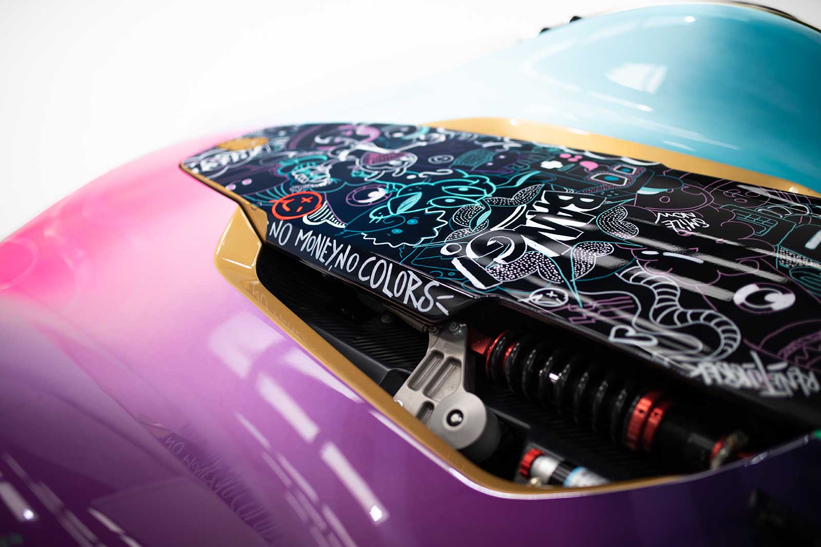 Since its launch in 2011, the Mono has always been a bespoke supercar bought by highly unique individuals and, with unlimited personalisation options, no two Monos are ever the same. To highlight the blank canvas offered by the pure design of Mono, creating an Art Car with Rene was seen as a natural transition to demonstrate how a Mono could look, if approached with complete artistic freedom.