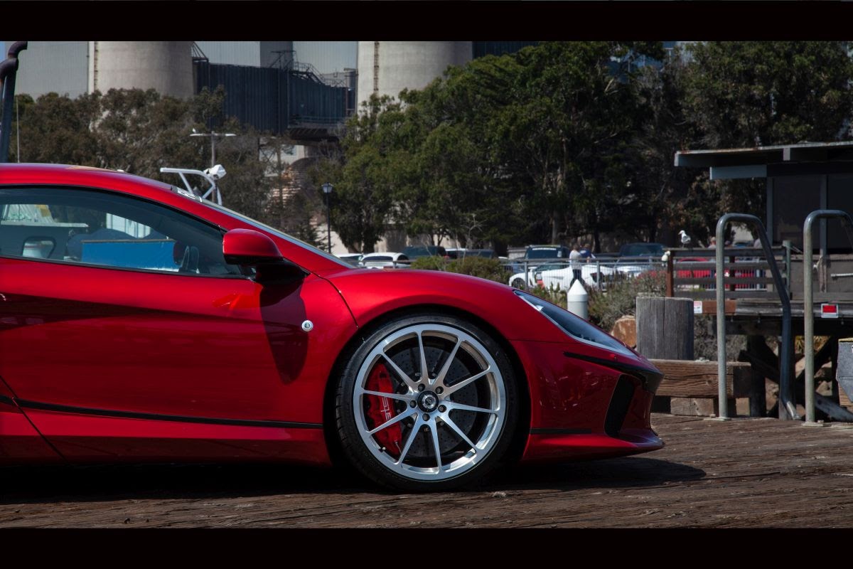 The aerodynamic, full-carbon-fiber bodywork has been designed to be a reinterpretation of the original Franco Scaglione design. The contemporary bodywork provides to be functional and striking to look at the same time, with its distinctive side-blades adding to the unique character of the GT. The rear lights have a unique and floating design, as they look completely detached from the car itself. They provide the vital function to extract the hot air from the engine bay, and they work at their best, especially when the car is moving thanks to the dynamic air effect created by the roof air intake.