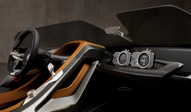 the interior of the bmw 328 hommage visualises the functional passion the bmw 328 exuded already back then. thus the design of the interior is also pure and functional today. the entire interior structure is made of cfrp, conveying the lightweight construction concept of the bmw 328 into the inside of the car both visually and functionally. due to the special application of materials, open-ings and freely suspended elements, the surfaces and different levels create an all-embracing feeling of lightness.