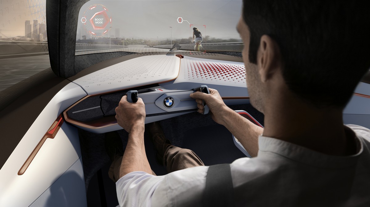 the design of the interior permits various modes of operation: boost mode, in which the driver is at the controls, and ease mode, in which the driver can sit back and let the vehicle take over. in ease, the vehicle becomes a place of retreat with plenty of space, agreeable lighting and a comfortable atmosphere. in boost, the driver takes over and benefits from the subtle and intuitive support offered by the vehicle. all the time, the vehicle is learning more and more about the person at the wheel, thanks to its sensory and digital intelligence, which the bmw group calls the companion. the companion progressively learns to offer the right kind of support to transform the driver into the ultimate driver.