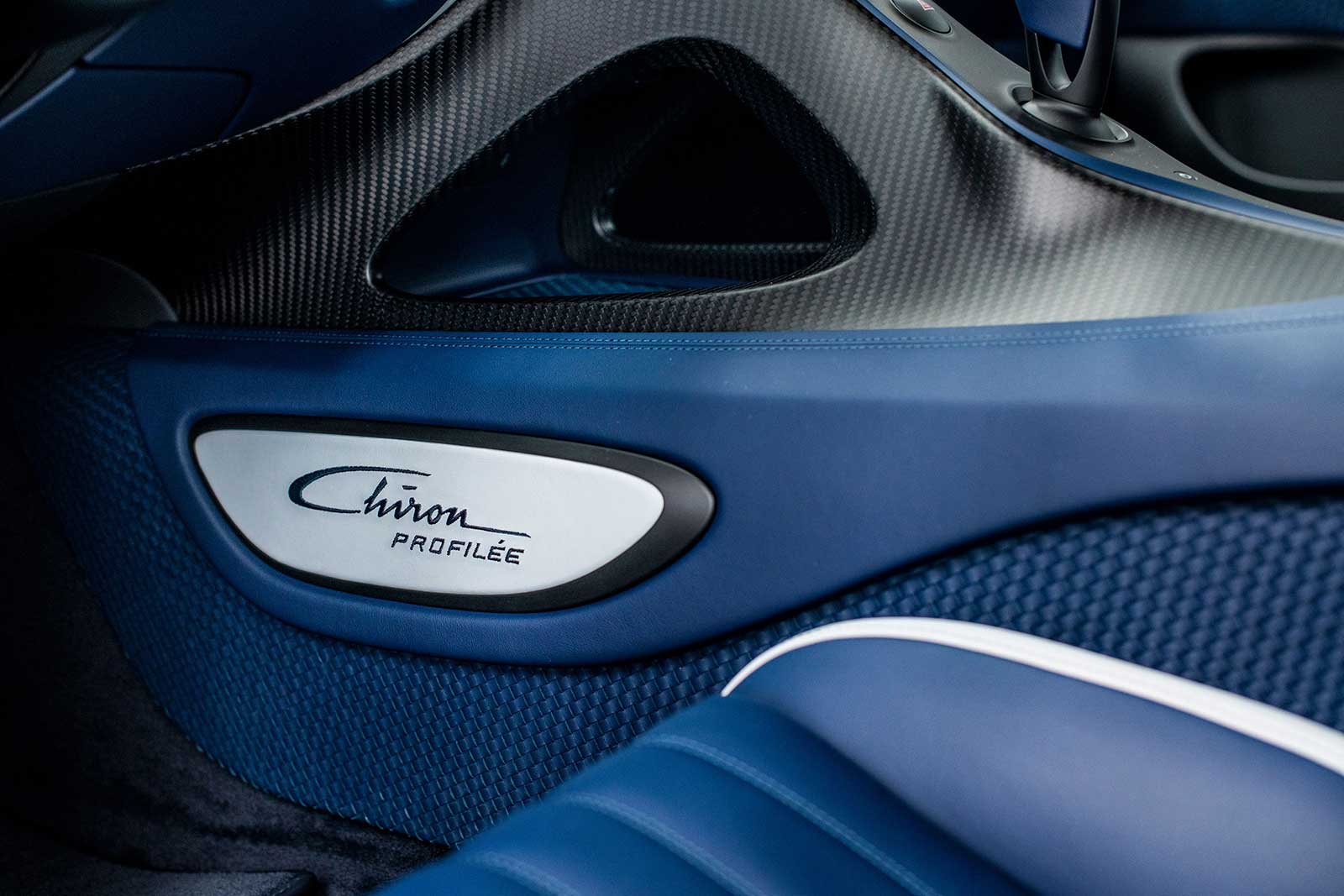 The interior of the Profilée is familiar to Chiron owners, finished by hand at Bugatti's Atelier in Molsheim. Designed around authentic and high-quality materials, such as leather, carbon or solid aluminum, each component is worked and refined by hand for hours. The design itself follows a philosophy of defined minimalism, reducing each component to its simplest and most beautiful form.