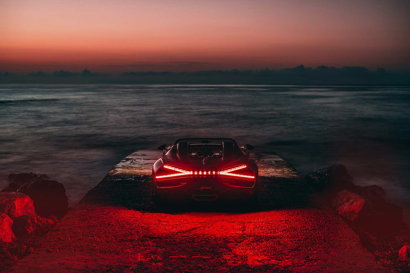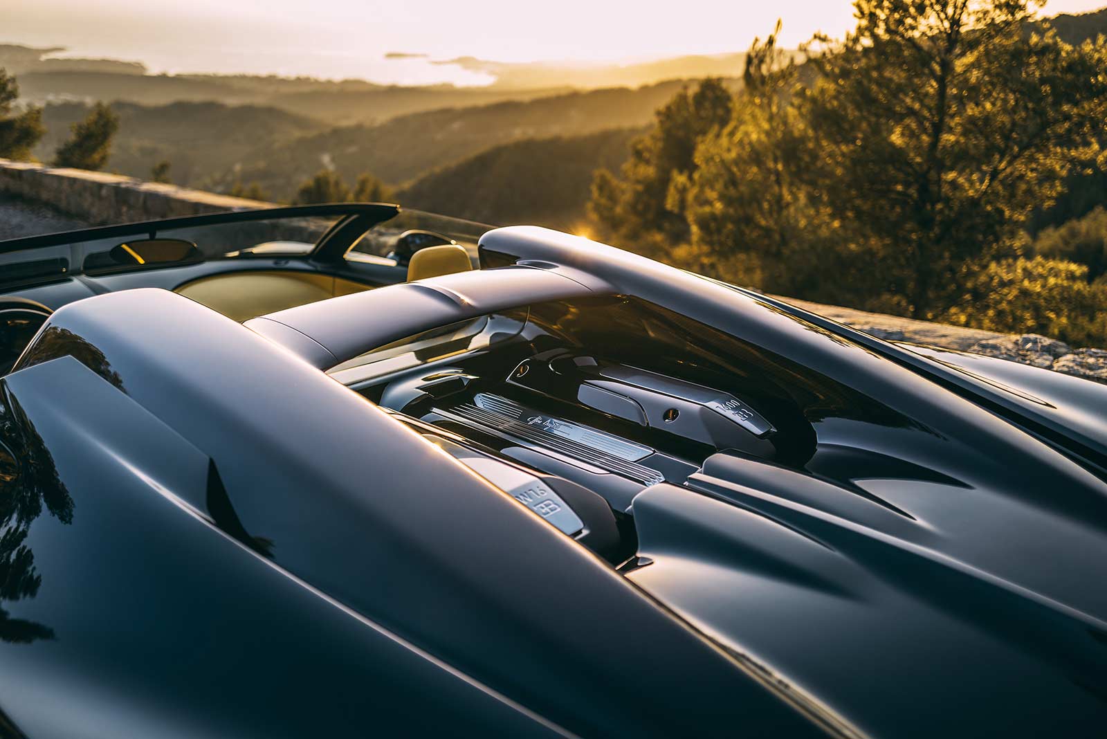 The roadster’s power derives from Bugatti’s legendary W16 powertrain, in this incarnation producing 1,600 PS, carrying its passengers up to incomparable speeds just as the mistral effortlessly accelerates through the foothills and into the Mediterranean Sea. The W16 Mistral delivers performance unlike any roadster that has gone before, capable of reaching 420 km/h while also allowing its driver to experience the freedom of nature and the full intensity of the W16 engine.