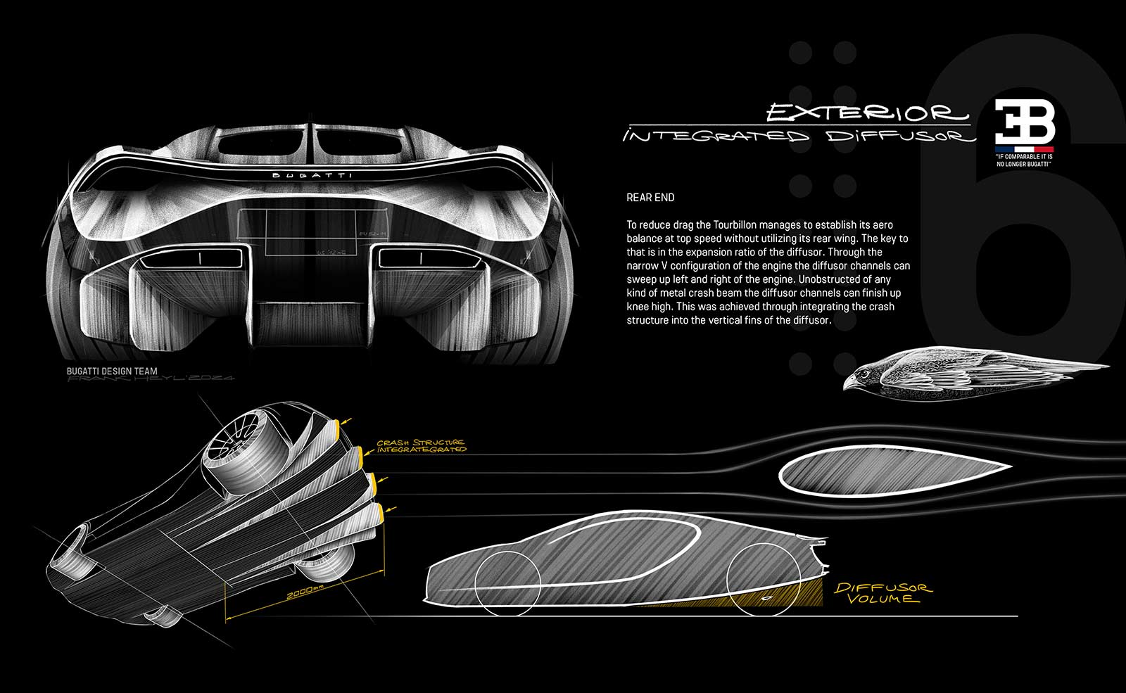 Heyl delves into how the Tourbillon’s design is intricately linked to the brand’s longstanding philosophy that form must follow performance. With over 115 years of history, Bugatti’s design DNA is rich and deeply embedded in each vehicle, and the Tourbillon is no exception. Every curve, intake, and panel of the Tourbillon is meticulously designed not only to achieve top speeds but also to enhance the car's aerodynamic efficiency. This unwavering commitment to performance ensures that the Tourbillon is engineered to handle speeds surpassing 400 km/h, setting a new benchmark for high-performance cars.