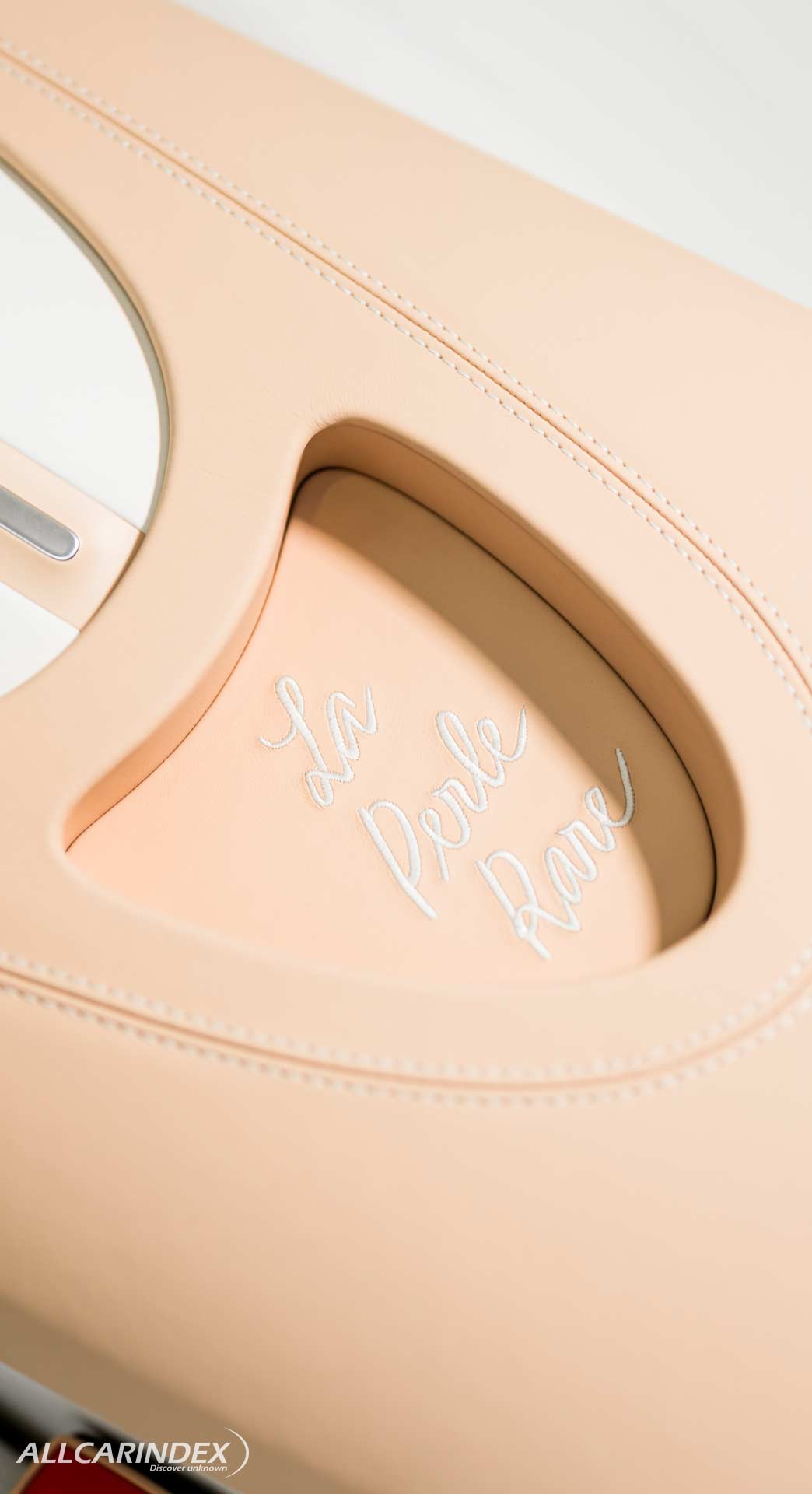 The vehicle is marked by deeply personal artistic statements. The name ‘La Perle Rare’ is rendered in Jascha Straub’s own handwriting and can be found stitched along the central tunnel, engraved on the bespoke white-and-gold engine cover, and painted beneath the rear wing. This individualization is balanced by a nod to the past; Rembrandt Bugatti’s iconic Dancing Elephant sculpture is immortalized within the gear selector casing and on the body panels behind the front wheels. It is a harmonious blend of a century of design legacy and a modern, personal vision.