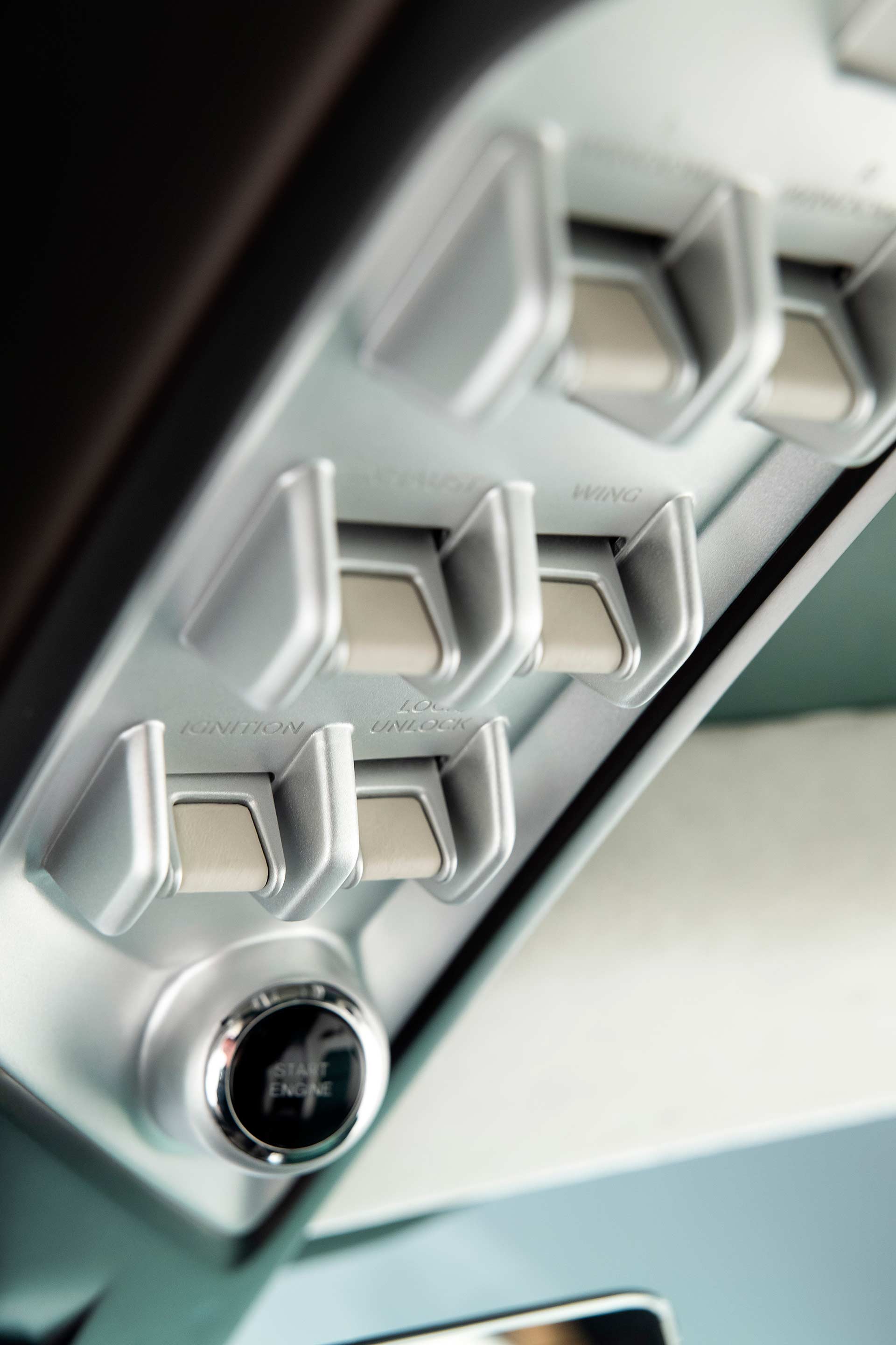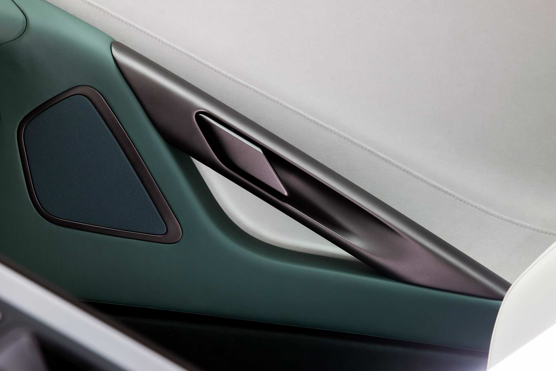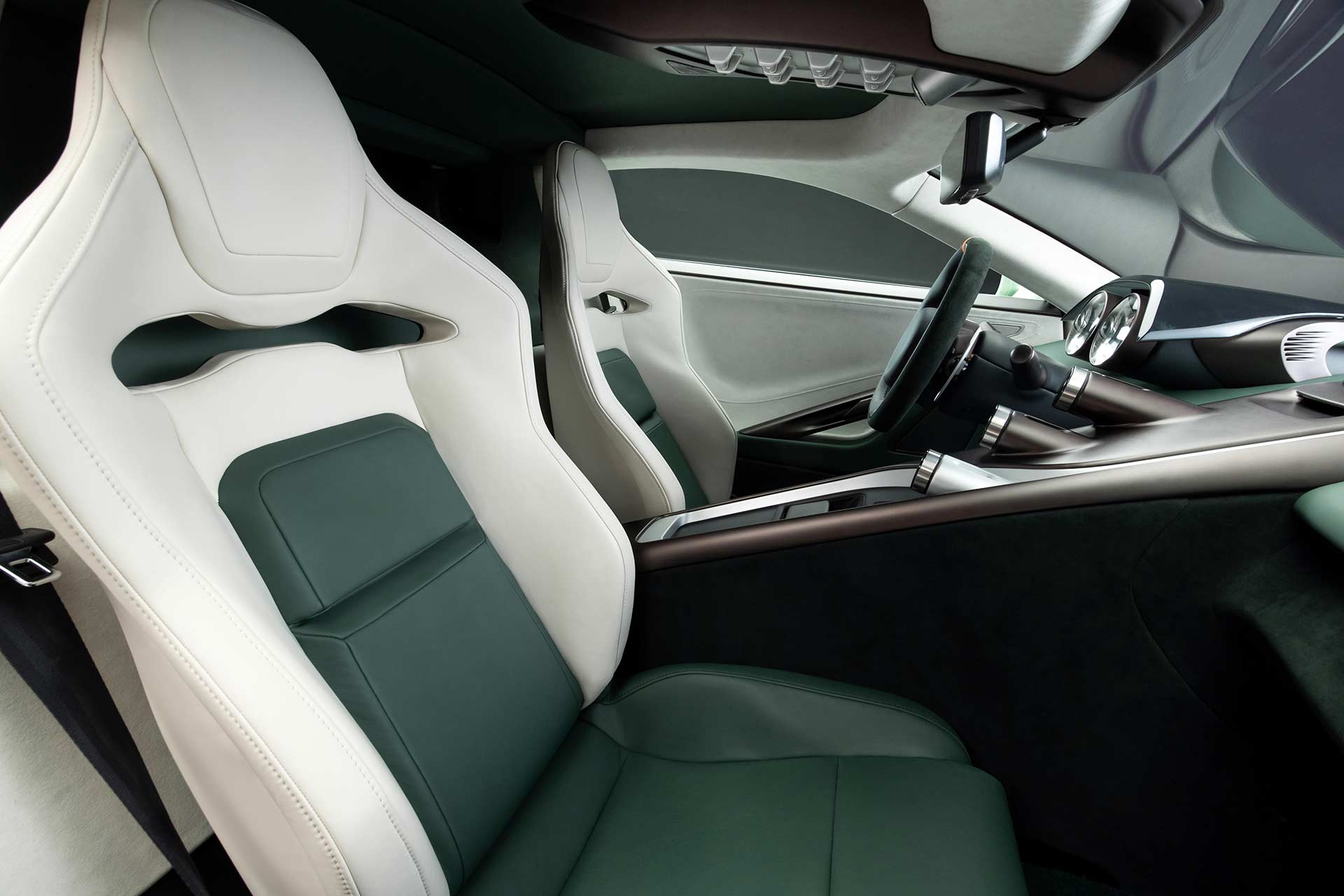 The car’s controls have been modernized, with touchscreen-integrated rotary dials angled for the driver’s convenience. Above, an acrylic cowl shields the digital instrument cluster, maintaining the cockpit’s clean lines. Further innovations include a roof-mounted start button, a design inspired by aircraft for intuitive control while preserving the cabin’s aesthetic purity. An advanced sound system, custom-designed for the car, delivers high-quality audio for everyday driving, complete with wireless connectivity and Apple CarPlay integration.
