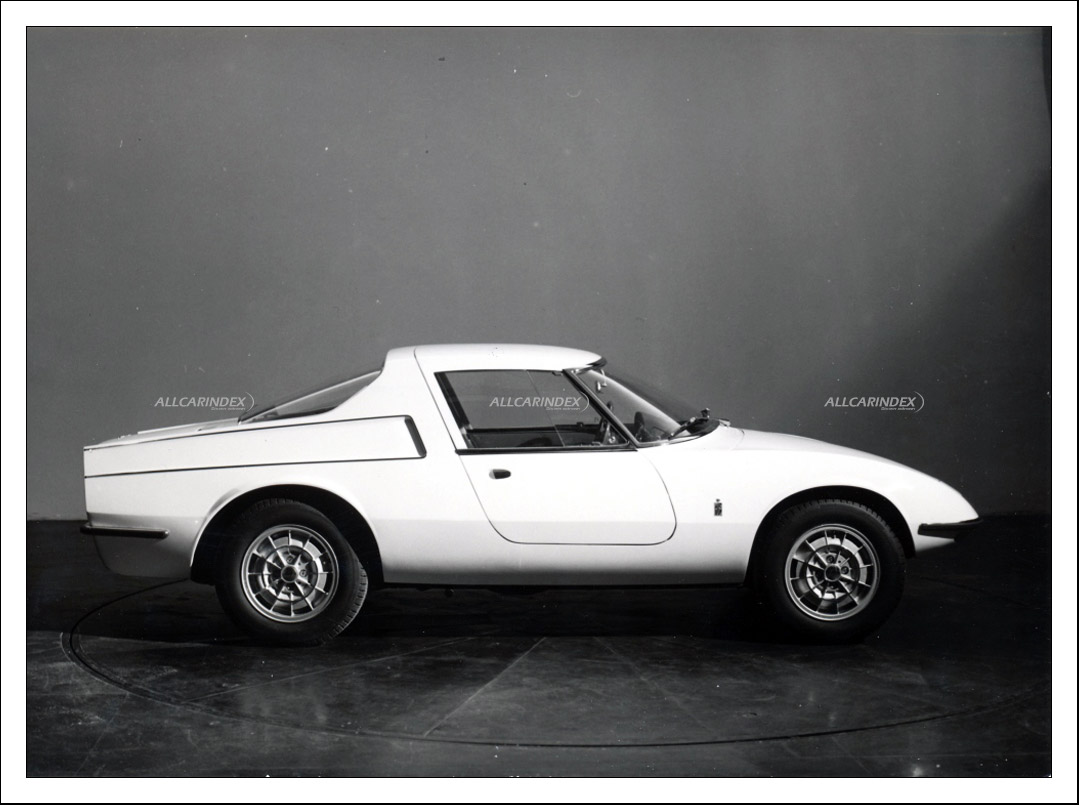 The Fiat Abarth 100 Special Coupe was a stunning creation from the collaboration between Pinínfarina and Abarth Co. The sleek 2-seater Coupe was powered by a Fiat Abarth 1000 - 4 cylinder engine with 54 HP-DIN, derived from the Fiat 850 model. The design featured a slender and low appearance with a lenticular front end and thin aerodynamic fenders. The front lights, specially made by Carello Co., were protected by a transparent fairing. The side windows and windshield formed a seamless element that could be tilted forward for easy access to the car. The rear window provided excellent visibility, while the rear end housed the mechanical group.
