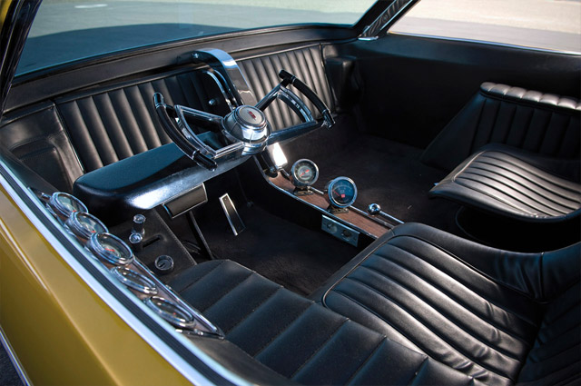 The radical Deora customized truck was based on the Dodge A-100 pick-up truck and fabricated in metal by the Alexander Bros. of Detroit. The windshield rose up like a tailgate on a wagon, allowing the lower front section short of the headlights to swing open. At the same time, the steering gear swung to one side for easy driver entry and exit. The engine instruments were located on a panel to the left of the driver, with the tachometer and speedometer housed on a center console. The Deora was powered by a slant six-cylinder engine, with the option to fit a 318 V-8.