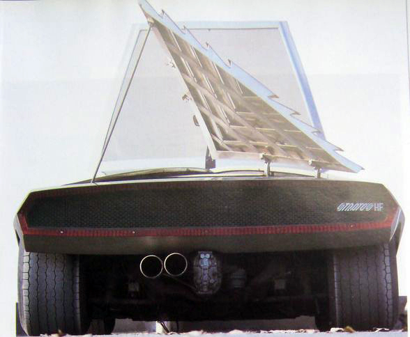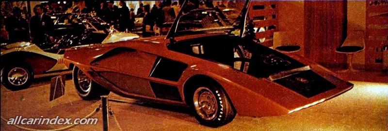 In terms of car design, the most original idea to come out of 1970 was a futuristic prototype by the name of Stratos 0, fruit of Bertone inspiration. It all started with the idea of mounting the engine block from a Lancia Fulvia 1.6 HF on a new base. The engine was centrally-mounted in a lowered position, and the suspensions and steering elements were designed according to a revolutionary line, breaking out of any known set moulds. The result was a flowing verent ishape which tapered in sharply at both ends, 358 cm long and just 84 cm high.