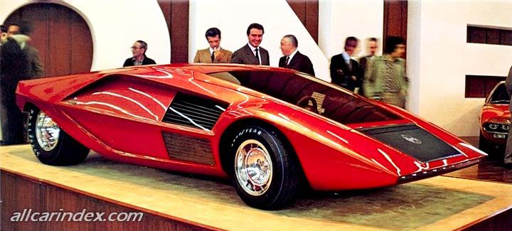 The presence of the four wheels was the only conceptual link to the contemporary idea of an automobile. The marked shaping of the wings, which accentuated the wedge-shape of the body, and the triangular motif of the roof, and air vents, all served to underline its stylistic divide from the classic elements of car design. The technical features employed were astounding: the double side windows, the front and rear lights, and the access to the car with the entire front of the vehicle opening up to let the driver literally walk up to the driving seat. The "Stratoline," as Nuccio Bertone had initially christened it, went beyond an exercise in design to represent a global reworking of the actual concept of what makes a car.