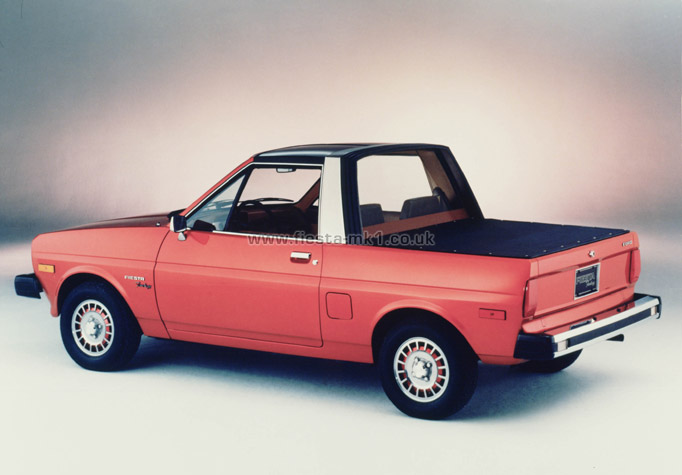 The lightweight fiberglass tops of the Fantasy easily clamped onto the pickup's cargo box to create its different models. The vehicle's dimensions, engine, front-wheel-drive system, suspension, and appearance were all based on the German-built Fiesta introduced at Ford dealerships the previous year.