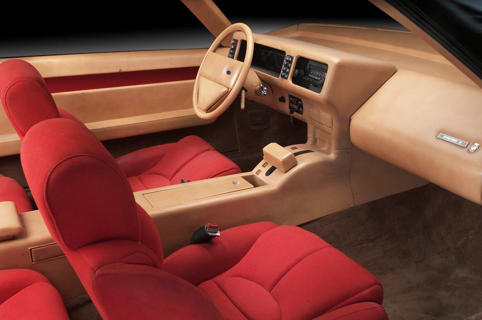 The interior of the Probe I was just as revolutionary as its exterior. Featuring a sleek and modern living-room atmosphere, the car was designed with long-range driving in mind. An electronic message center, entertainment system, and advanced stereo sound were just a few of the high-tech features that set the Probe I apart from traditional vehicles.