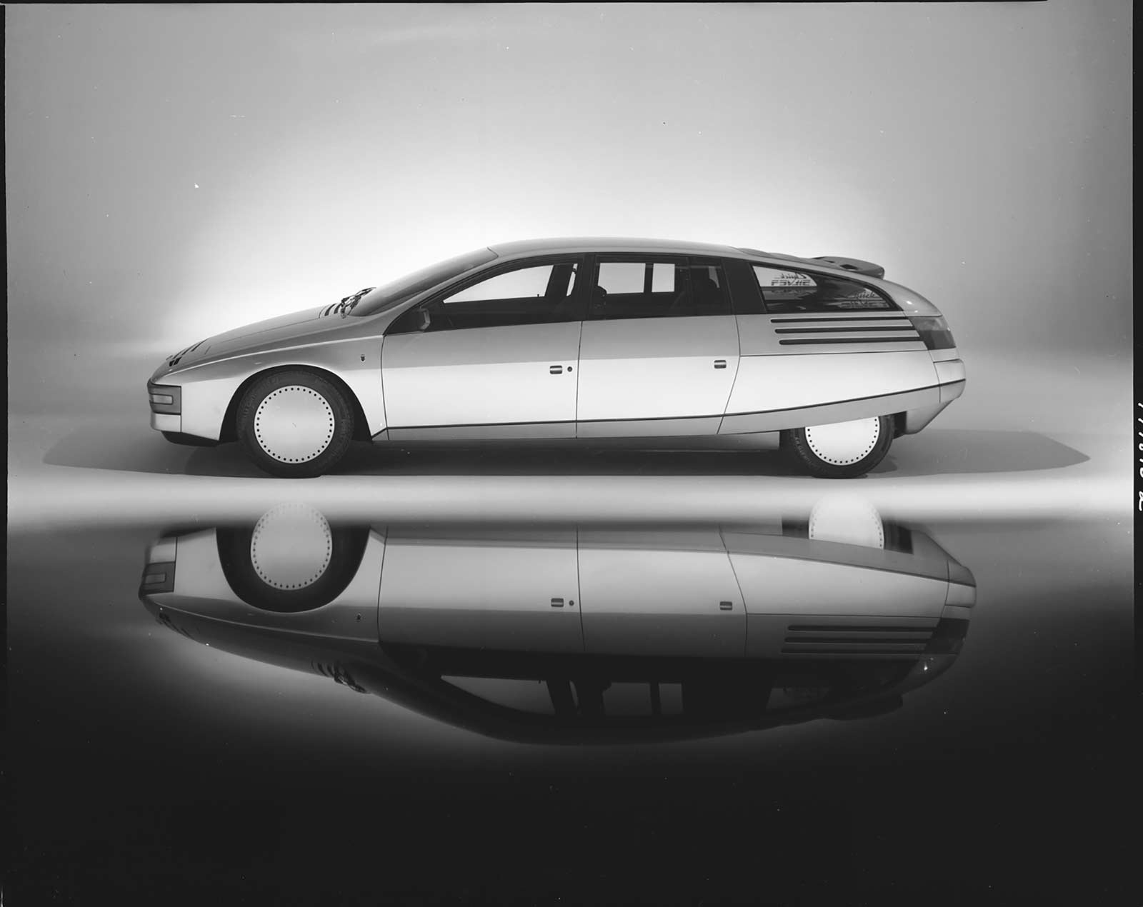 The Ford Ghia Quicksilver, an aerodynamic, mid-engined, high performance five-seat luxury concept sedan, marked the third stage of a mid-engine design study which was begun at the Ford Ghia Studios in Turin in the late 1970s.