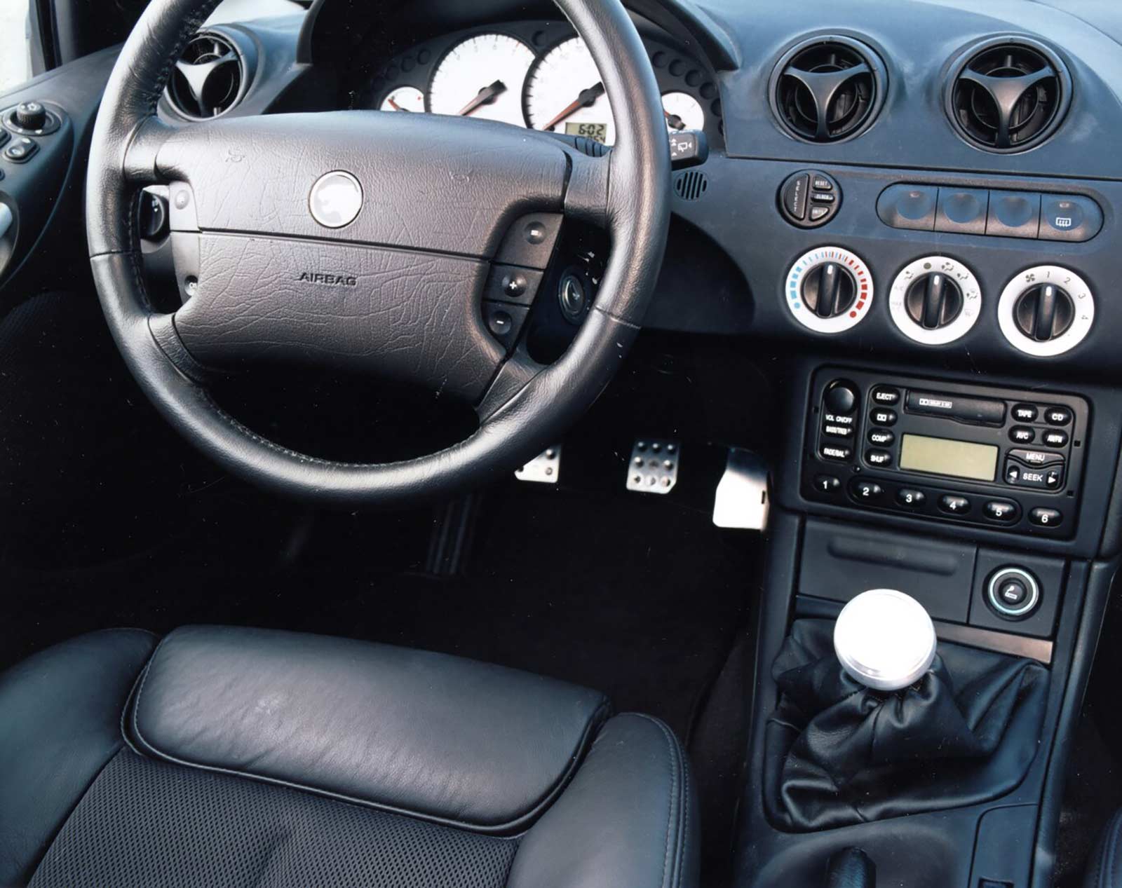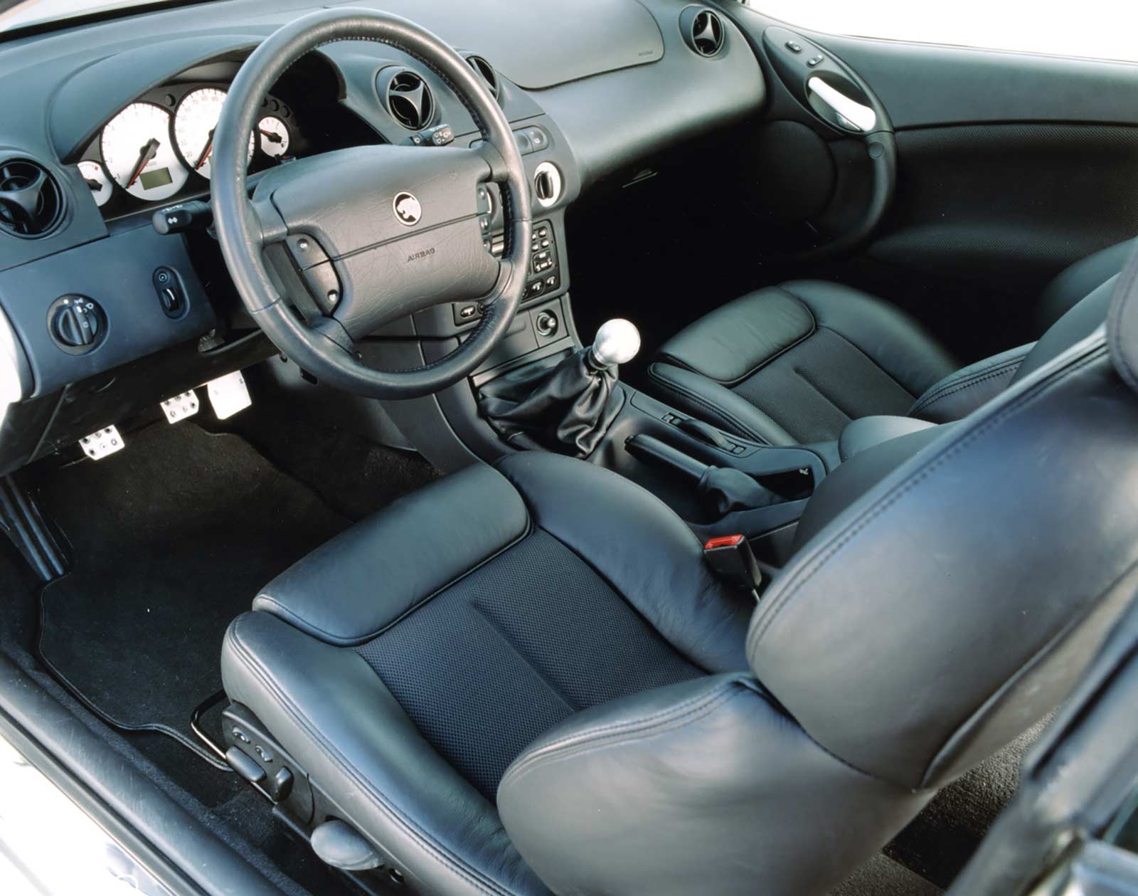 Ford's Advanced Design Team and Special Vehicle Engineering developed the Cougar S concept to match the production model's agility, power, and personality. Other features of the concept included larger Brembo brakes, a wider track for improved handling, and a unique aerodynamic package for optimal performance. Inside, the concept car boasted Recaro racing seats, alloy ped...