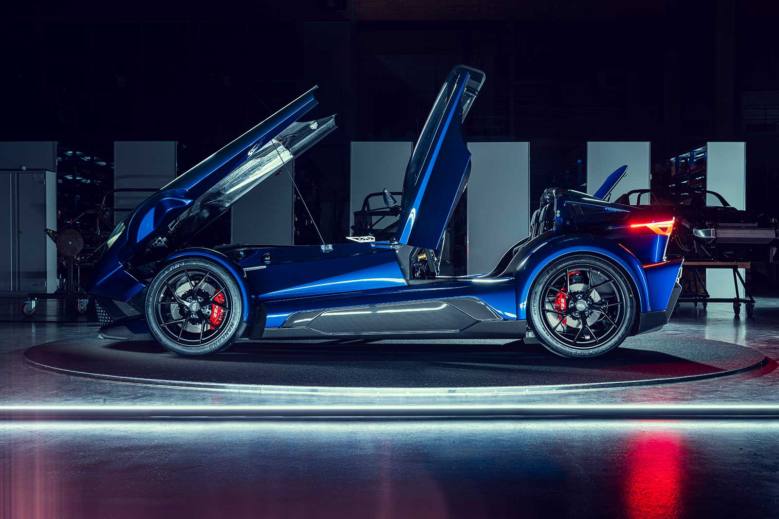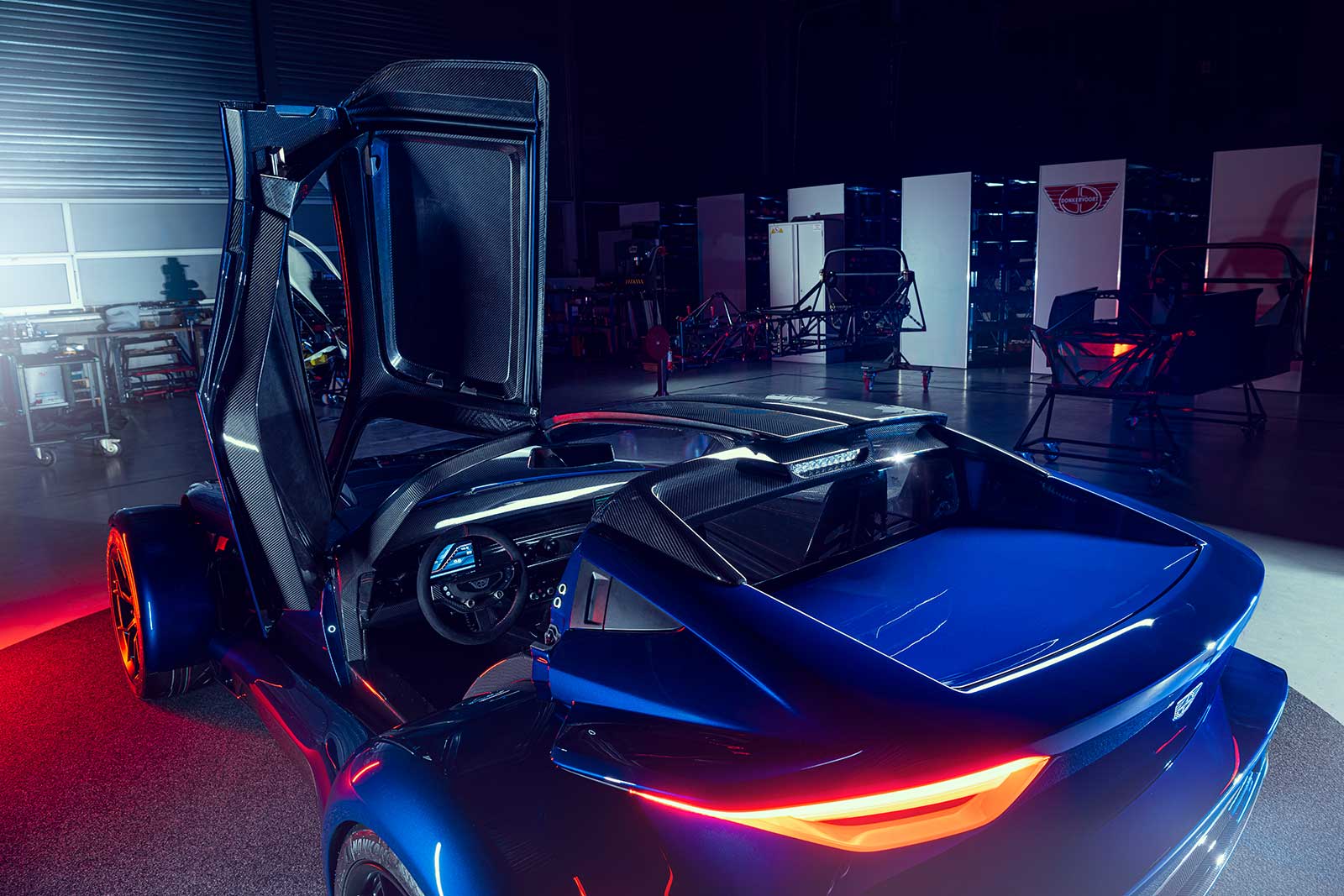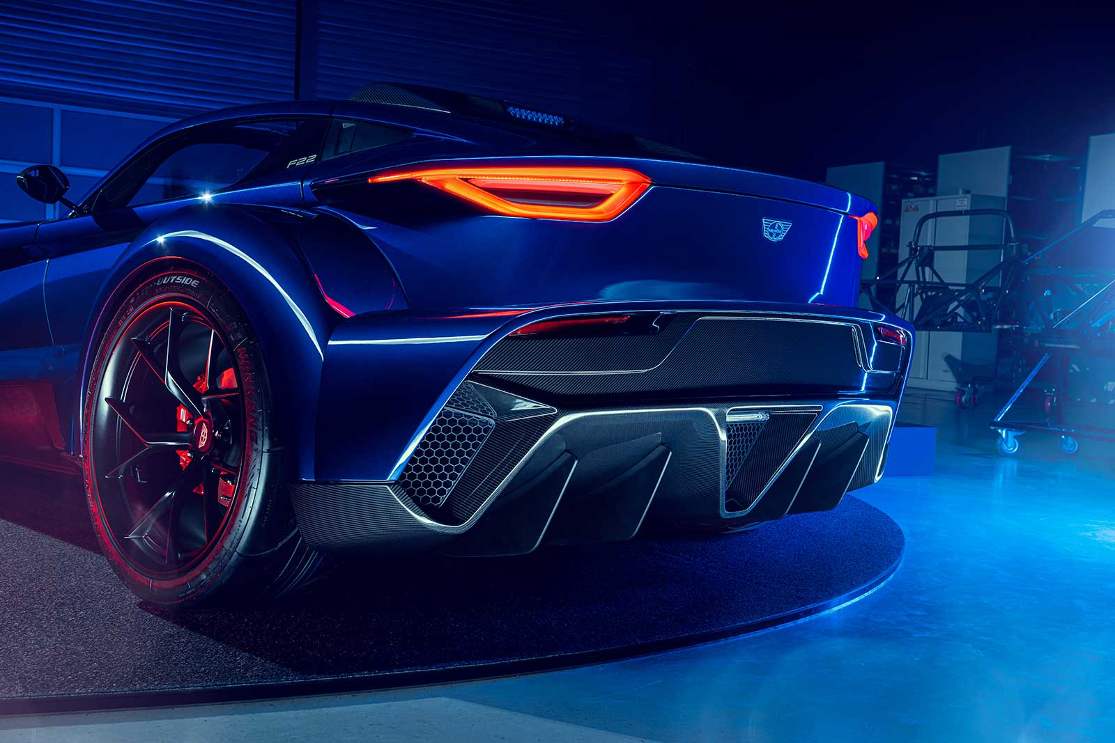 The front end is entirely new, and Donkervoort has a unique process for its rear lights that span the rear wings of the F22, certifying each tail light individually.