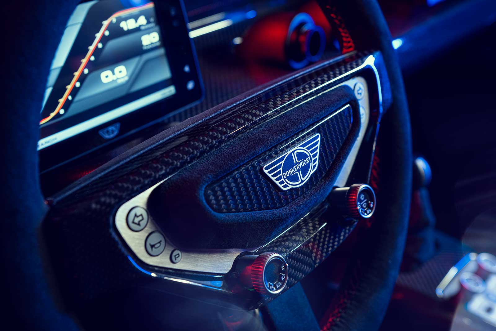 There is far more rake on the windscreen, with its Ex-Core carbon-fibre frame, than on any previous Donkervoort. It is integrated deeply into the chassis for added strength and visual cohesion.