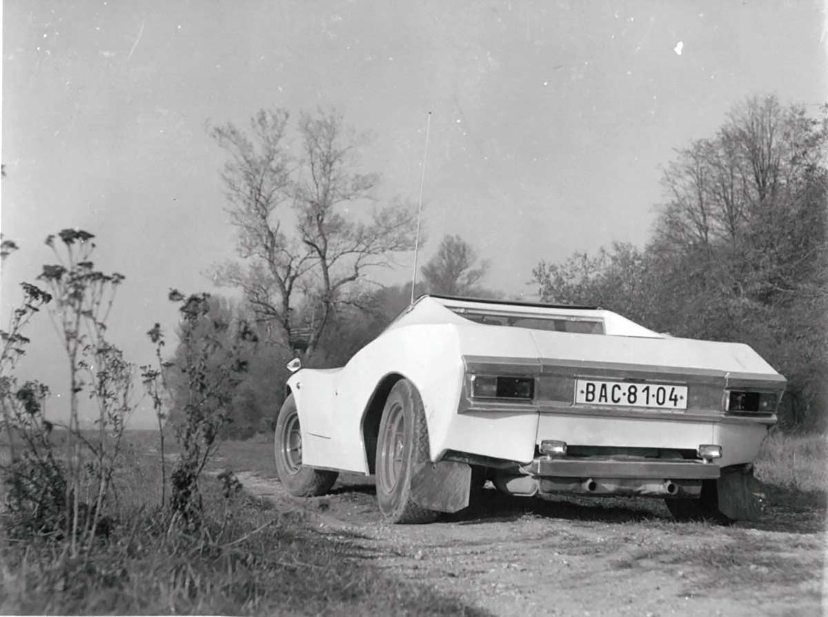 Mikšík chose the Volkswagen Beetle as the basis for his project due to its rear-engine design and availability. He constructed a steel space frame and designed a lightweight, futuristic body made from laminate, a material gaining popularity at the time. The one-piece fiberglass body was meticulously crafted, with doors, windows, and hoods carefully cut out afterward for precision.