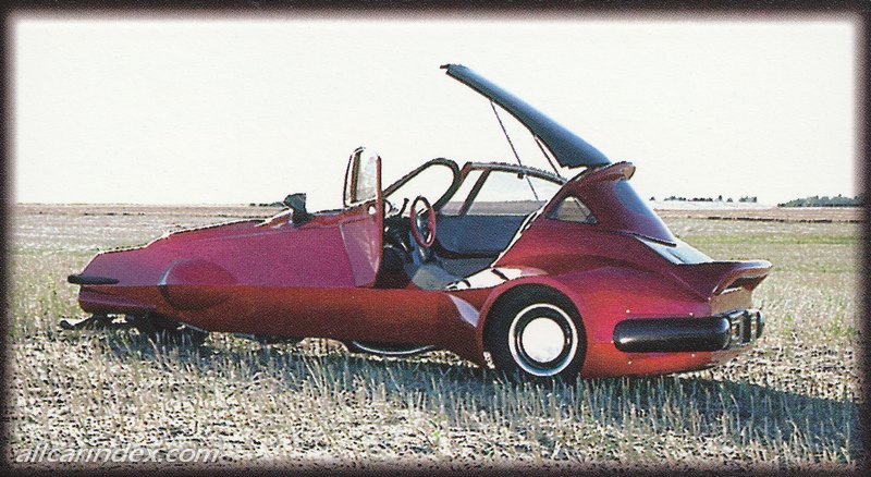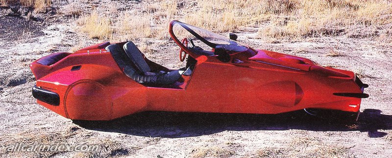 the car you see here is a unique canadian three-wheeler tandem named lance. it has been created by lance boettcher - the president of the fiberlite designs ltd. the company has been established in 1995 in strathmore, alberta but currently is located in calgary, alberta. the car has been designed to be powered by a small-block chevrolet 5-liter v8 engine mated with 3 speed automatic gearbox. lance's aircraft-inspired bodywork has ben been made of fiberglass composite what resulted in a total curb weight of only 744 kilos (1640 lbs)! put together, extreme lightweight and chevy power enables the car to accelerate from 0 to 96 km/h in 5.3 seconds. three-wheeled lance utilizes "leading link" suspension with semi-eliptec leaf spring and gas charged shocks in front and rigid axle with leaf spring, rear sway bar and two trailing links in rear. the car is equipped with drum breaks.