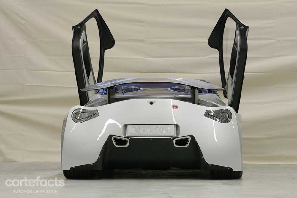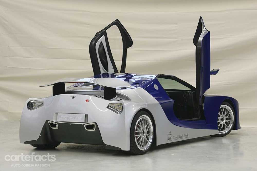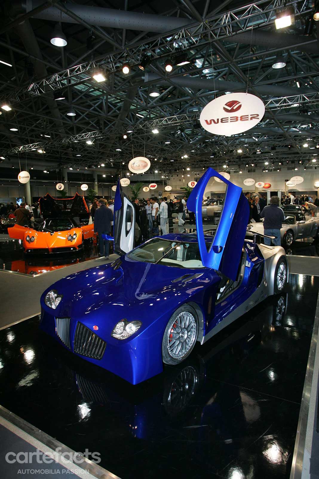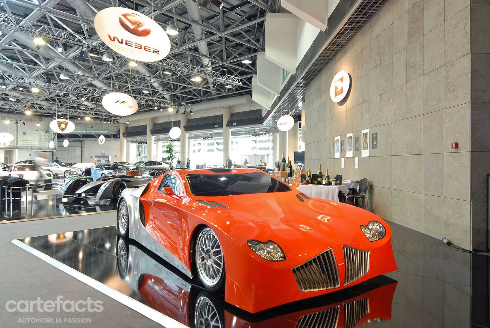 "The Weber F1 is the world’s fastest and lightest street legal four wheel drive supersports car ever built by engineers coming from the former BMW and Sauber Petronas Formula 1 team. Its V10 engine produces over 1200HP whereas its empty weight is just over 1250kg. Thanks to its exceptional power-to-weight ratio of 0.96 hp per kilogram, intelligent all-wheel drive and sophisticated aerodynamic properties the mid-engine racer sprints to 300 km/h in just 16.2 seconds and reaches a top speed of more than 400 km/h. It reaches the sprint from 0-100 km/h in less the 2.5 seconds. It features a full carbon fiber chassis and a monocoque body."