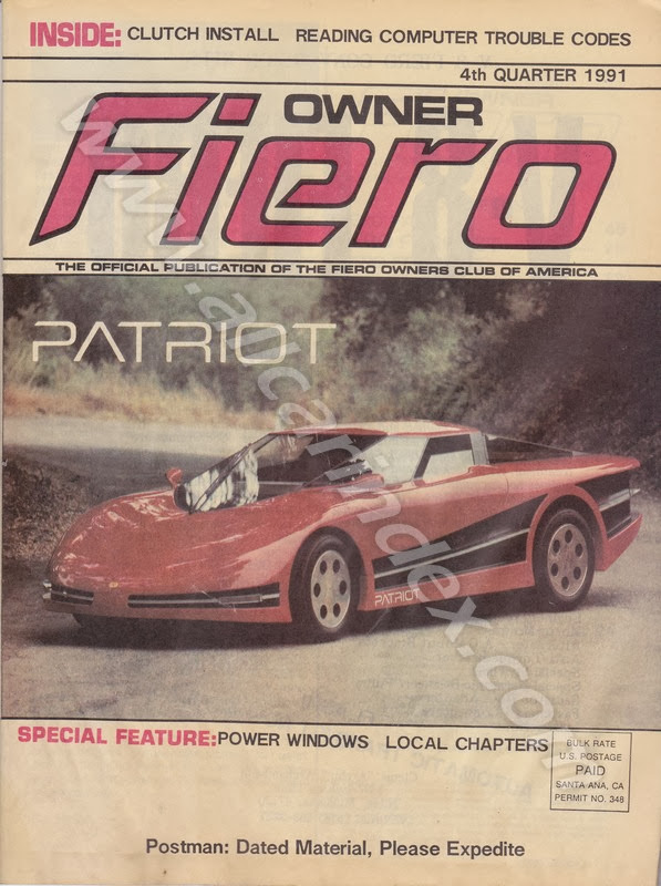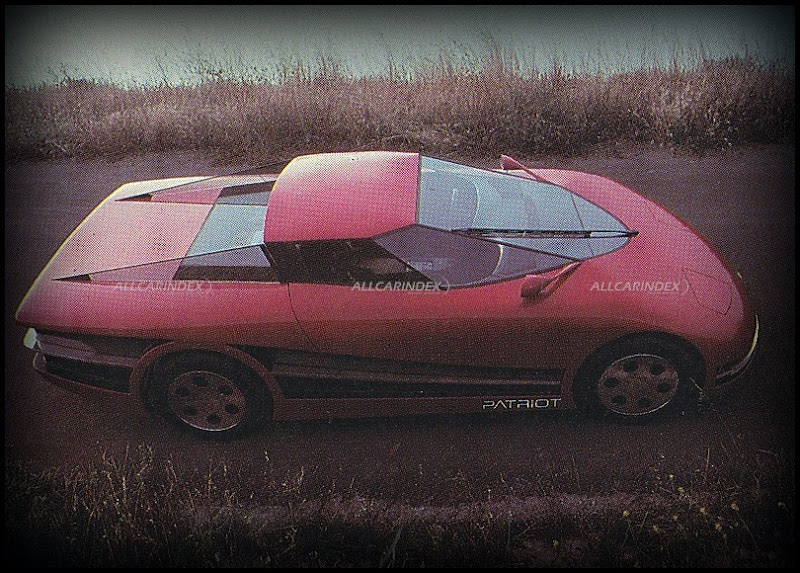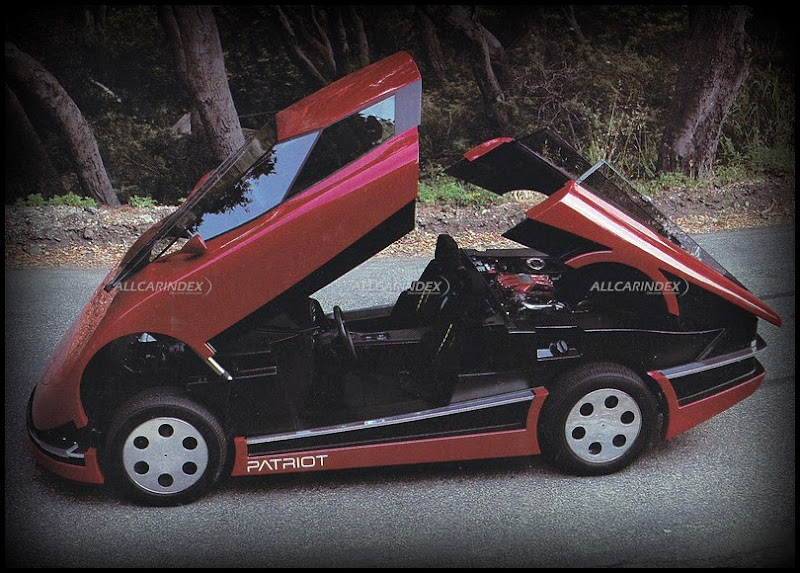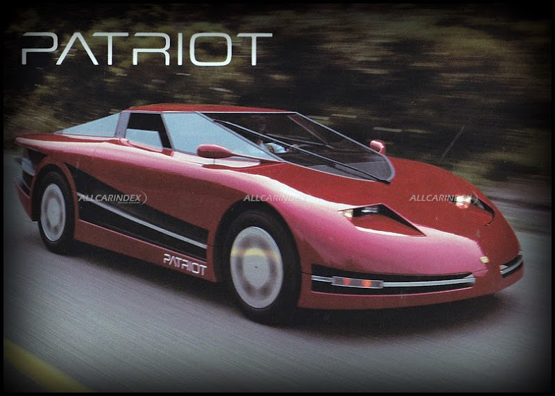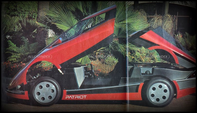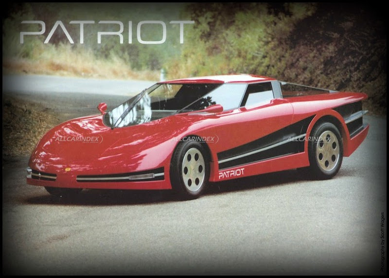 at the beginning of the next year a construction of the patriot began. patriot was built on an extensively strengthened pontiac fiero gt chassis. combining advanced styling and latest technology, its bodywork exquisitely finished in fiberglass consisted of 22 molded panels and was mounted onto three high-tech, carbon-reinforced subframes. the first one hinged at the front to give an access to the cockpit while the rear one was for the bonnet which lifted back to open access to the engine compartment. a huge unit composed of what was supposed to be doors as well as windshield and side glasses was electronically assisted by thompson-saginaw ballscrew actuators. the entire canopy lifted up and forward to open a well-finished interior including wraparound panel, momo steering wheel and recaro seats.