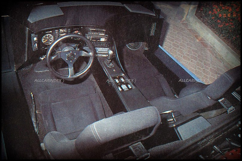 initially the countach 5000s replica prototype was powered by a vw engine, but very soon corbett recommended mazda rotary, porsche of chevy v6 power aggregates. in addition to that stock drum brakes were replaced by disc brakes all-round. moreover, standard equipment for the turnkey version included doors controlled via console-mounted buttons, hella lights, vdo night design gauge package, digital stereo system, custom wheels and corbeau reclining seats.