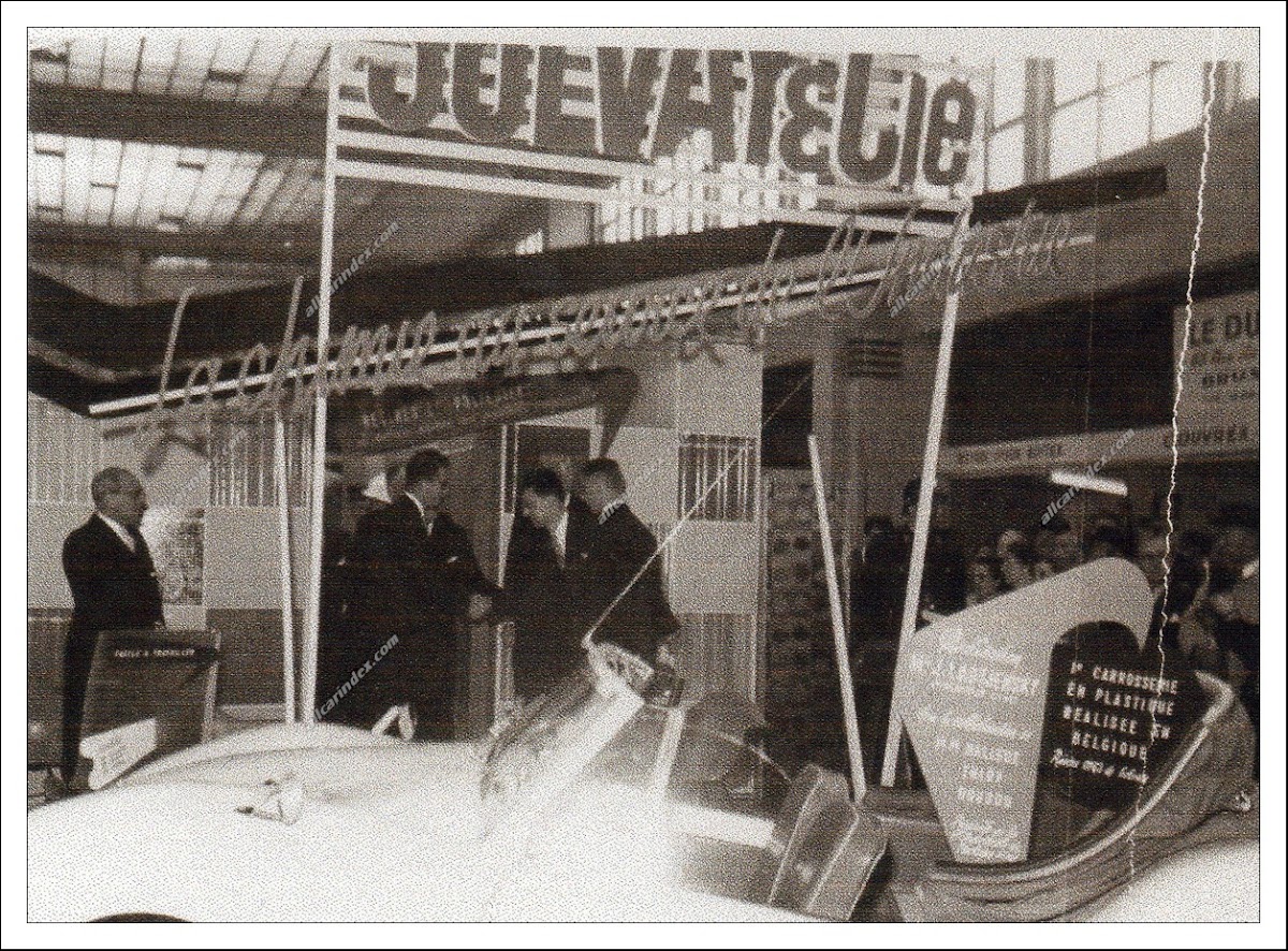 „... The body was made of polyester and fibreglass. The resin has been supplied by Solvay. I used my old VW that you can see on the picture too. Its motor was still good. The work has been done in 1955. In May 1956 the car has been exposed in Brussels in a stand of Solvay, where our king Baudoin came to see it. You may see him with me on the center picture. I made only one prototype and looked for an investor, but did not find one. I drove myself the car for 150.000 km, after what the chassis was at the end. Recently, I made a prototype of electric car, but here again I did not find an investor...“