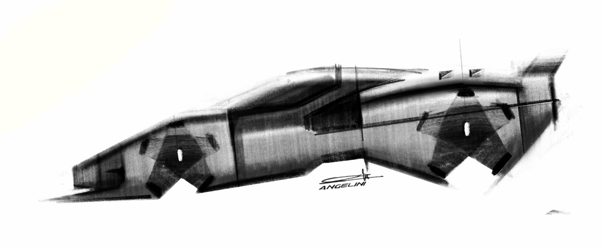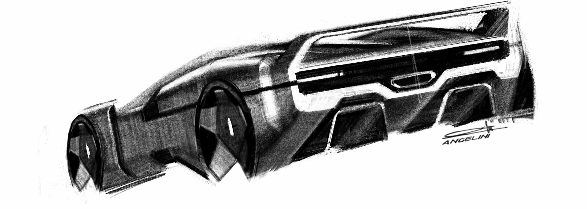 The car’s form was shaped by an industrial design philosophy, defined through precise geometries and muscular, squared volumes. A long, low front end balanced a short rear overhang and a high, fixed rear wing finished in SC40 White, a bespoke colour developed specifically for the project. This wing extended vertically from the engine cover, visually integrated by a black separator that highlighted the rear’s open mesh structure and revealed the car’s mechanical elements.