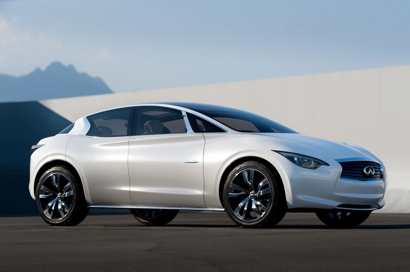 introduced at geneva this year the etherea is a five door hatch back that manages to look like a 4 door coupe. with its futuristic and spacious cabin and aggressive stance this 245bhp hybrid drive cross-over is aimed at younger buyers than infiniti’s traditional demographic. one of its most pleasing features, giving an aura of cool spaciousness, are the ‘clamshell’ doors; in other words the rear doors are hinged on the rearmost pillar and open to reveal open plan access to the cabin – there is no centre pillar, a feature of many classic sedans of the 20s to the 50s.