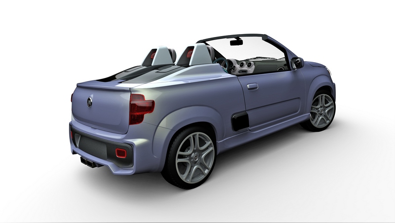 The convertible model, even though only for studies, is the first that experiences the two-door body of the new Uno, which shortly will be at the market’s disposal. This flexibility in terms of conception points towards innumerous possibilities that an advanced project, like the one of the New Uno, can allow.