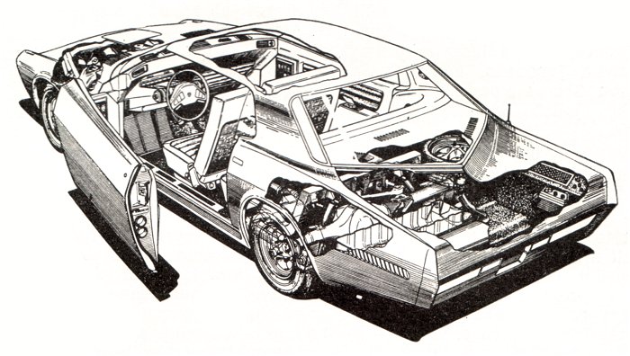 The Techna also featured two double-hinged electronically operated doors that slid out parallel to the body, supplemental brake and turn signal lamps mounted high in the rear window for extra visibility, and a structural windshield that eliminated front corner pillars. The front fenders and hood swung forward on a hinge similar to a truck cab, and a small maintenance hatch in the hood made service checks a breeze.
