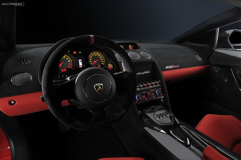 the gallardo super trofeo stradale sports a brand new “rosso mars” finish that underscores the special connection between ultimate race track performance and lamborghini’s “italianness”. the “rosso mars” color symbolizes italy’s traditional racing red, as established at the beginning of last century in motor racing, when the home nations of the competitors were indicated by the color of the paint on the vehicles. dark green stood for great britain, blue was for france, white (and silver later on) represented germany, white and blu stripes for usa, and red was the color of all race cars from italy.