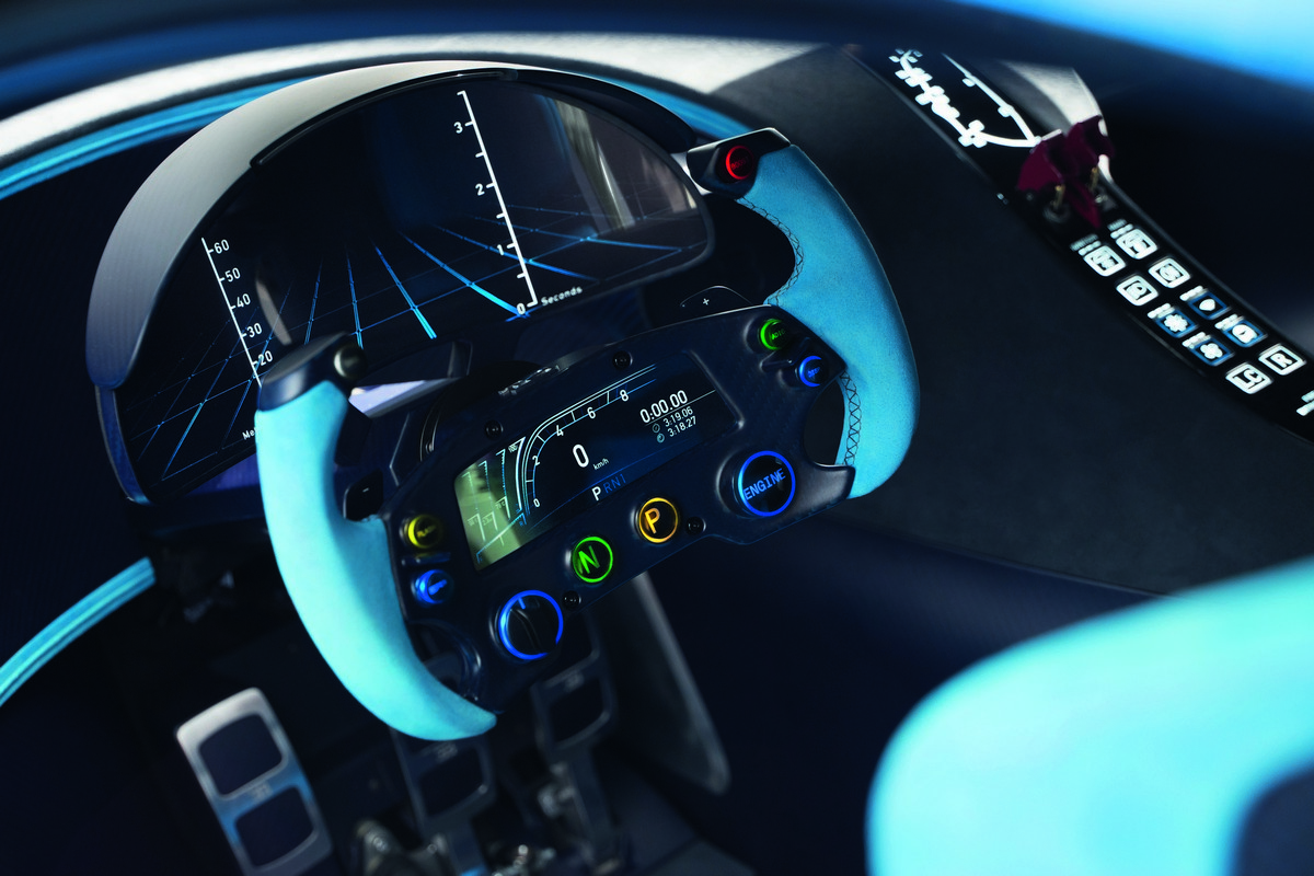 just as with the exterior, no comprises were made when it came to the design of the vehicle's interior. "it's the ultimate race car, and at the same time a true bugatti," says etienne salome, head of interior design at bugatti.